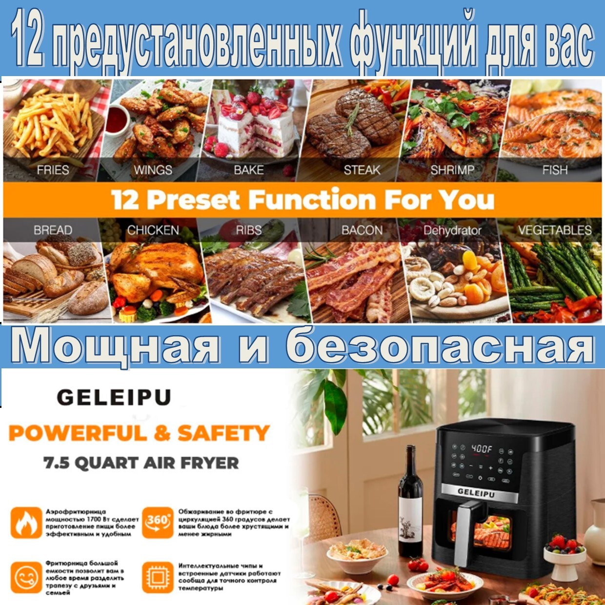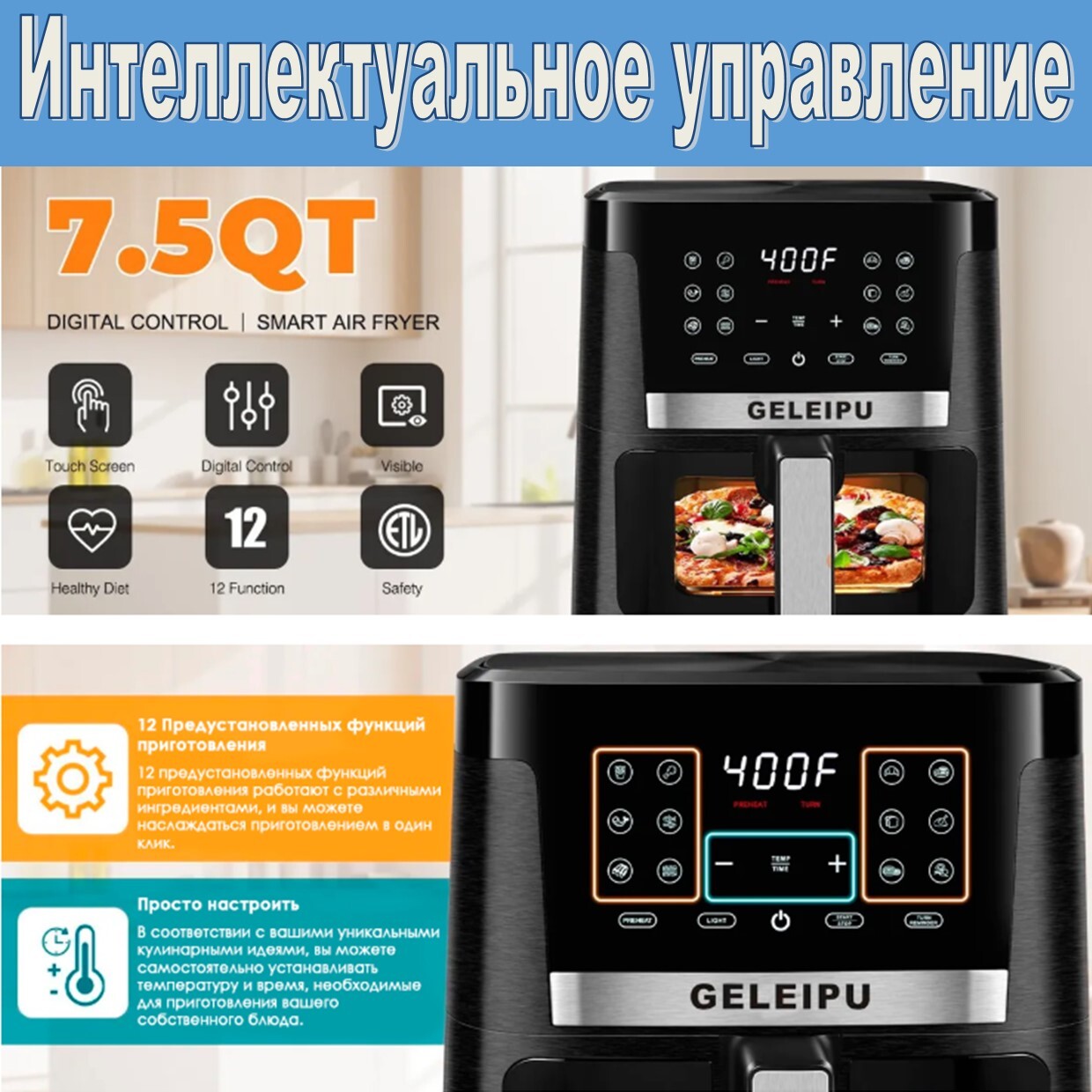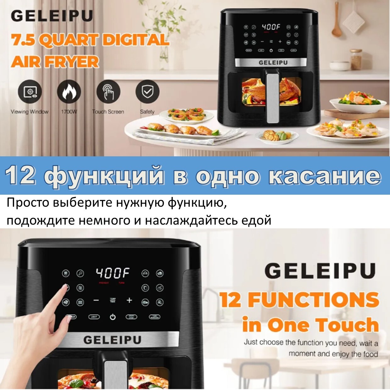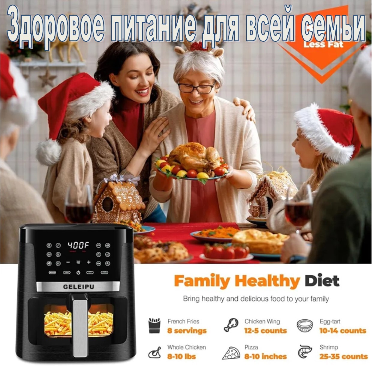 Аэрогриль фритюрница GELEIPU DL27 (ABS+нержавейка 7L)