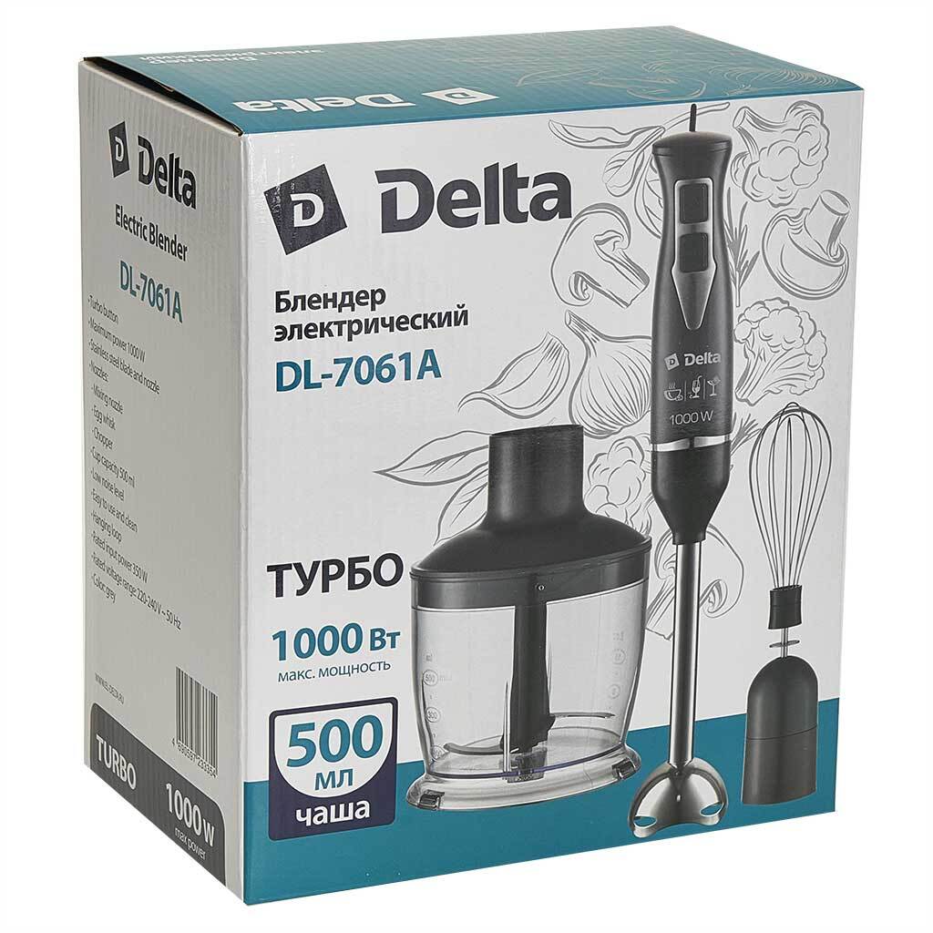 Блендер погружной 1000 Вт DELTA DL-7061A с измельчителем, венчиком, серый