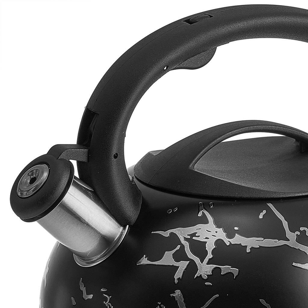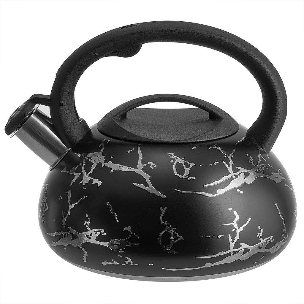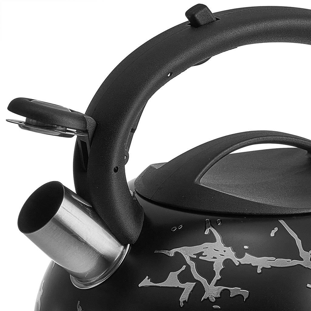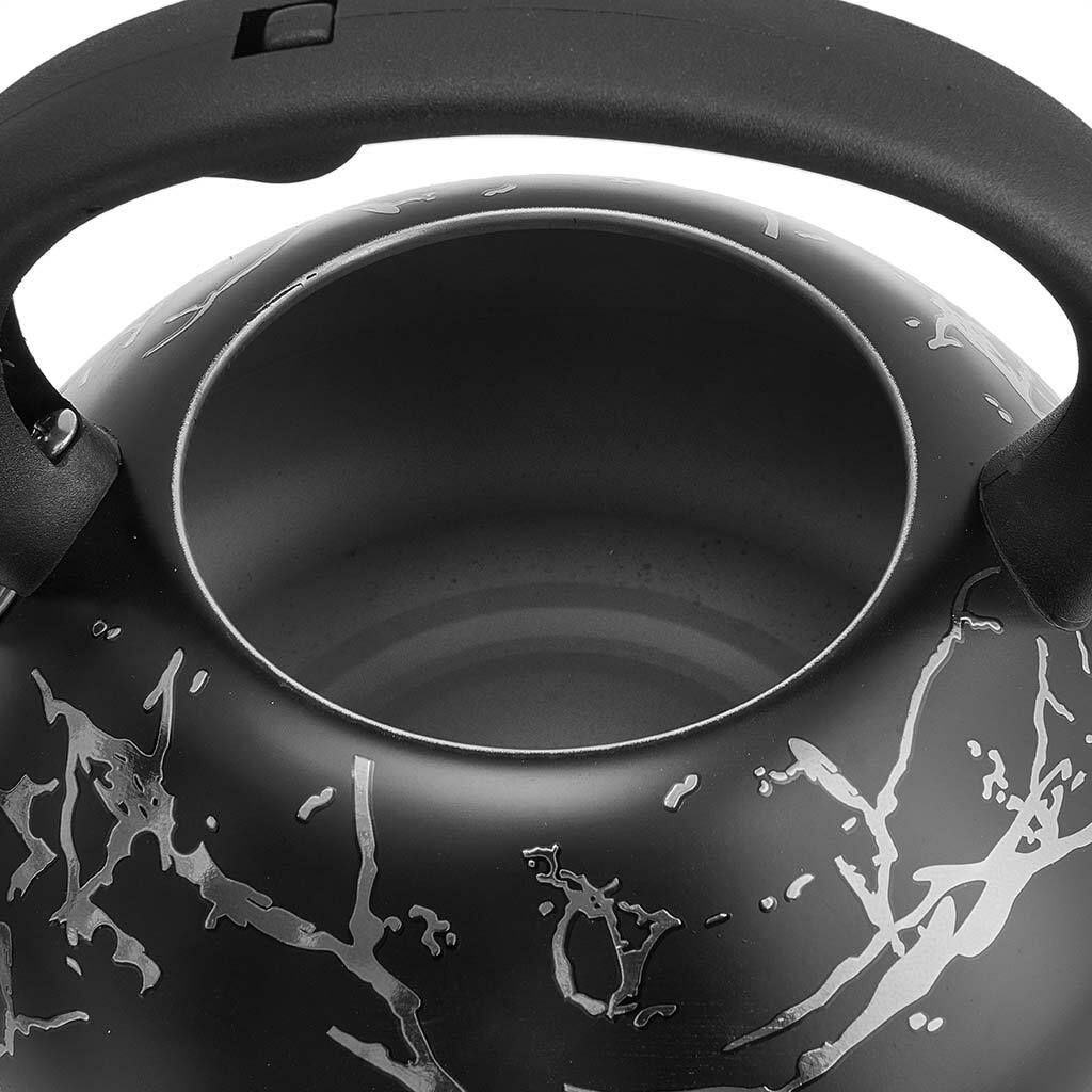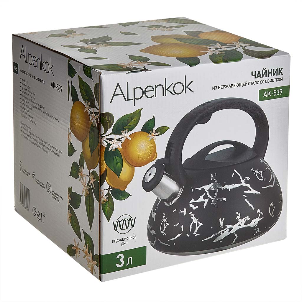 Чайник 3 л из нержавеющей стали со свистком, индукционное дно ALPENKOK AK-539 черный с серебром, ручка черный