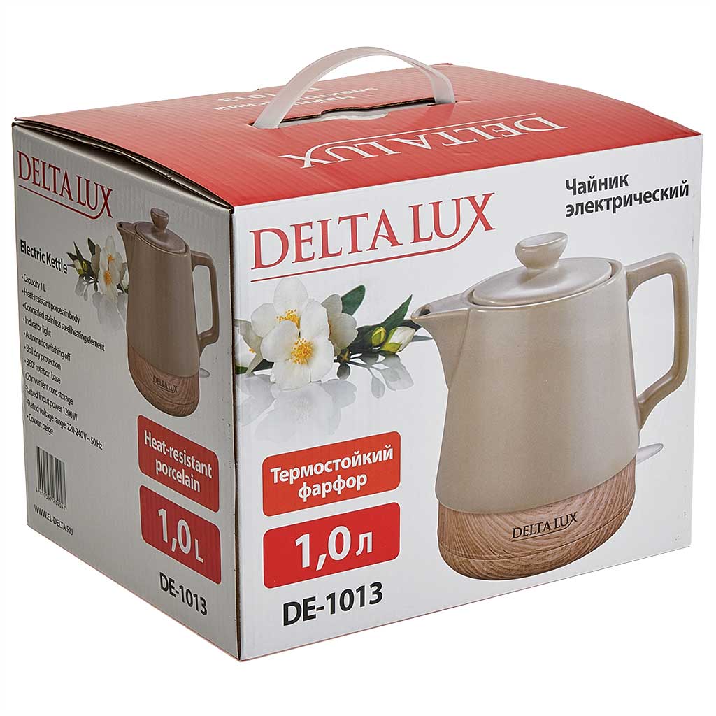 Чайник электрический 1200 Вт, 1 л, корпус из фарфора DELTA LUX DE-1013 бежевый