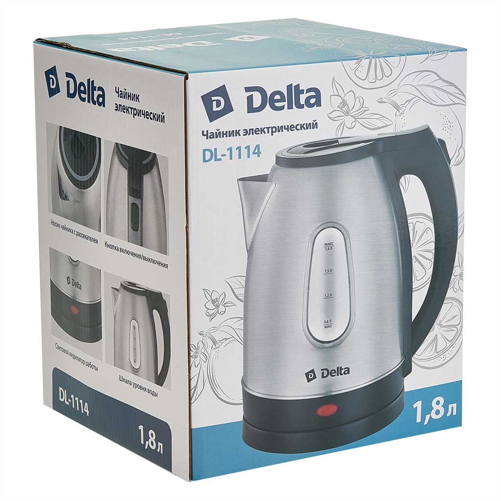 Чайник электрический 1500 Вт, 1,8 л DELTA DL-1114 черный с красным