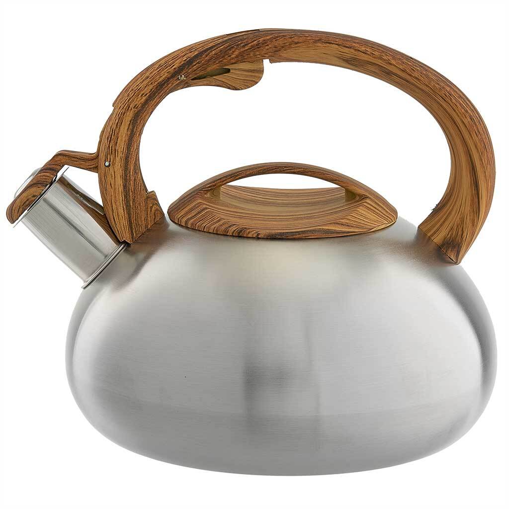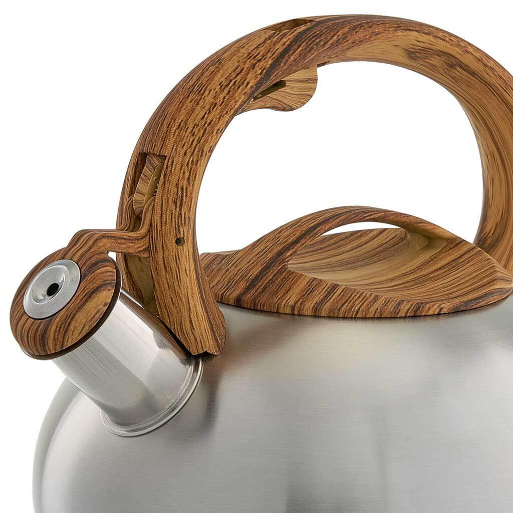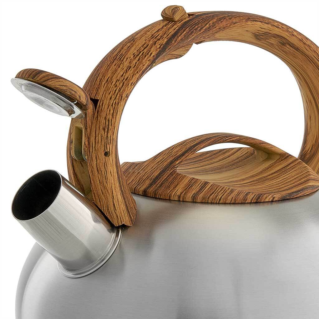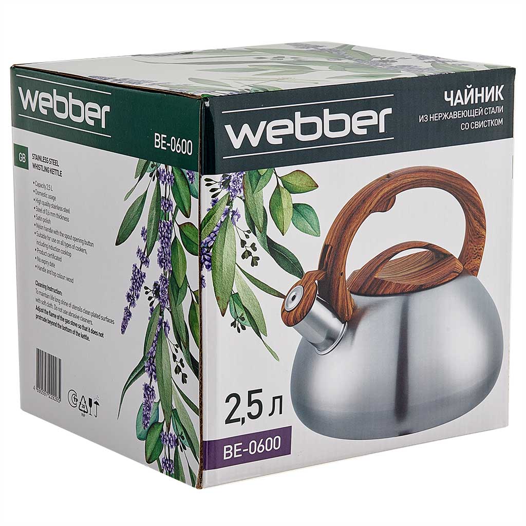 Чайник со свистком 2,5 л из нержавеющей стали, индукционное дно, сатин WEBBER BE-0600 дерево