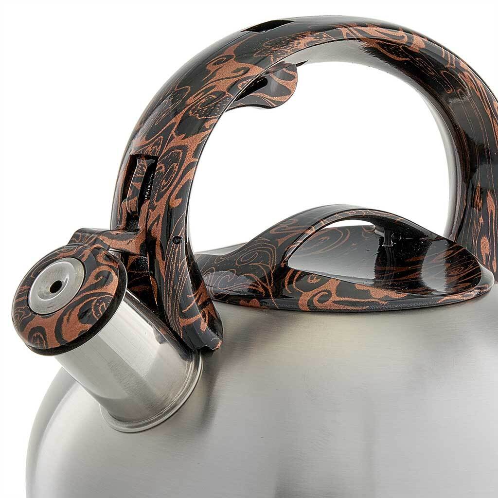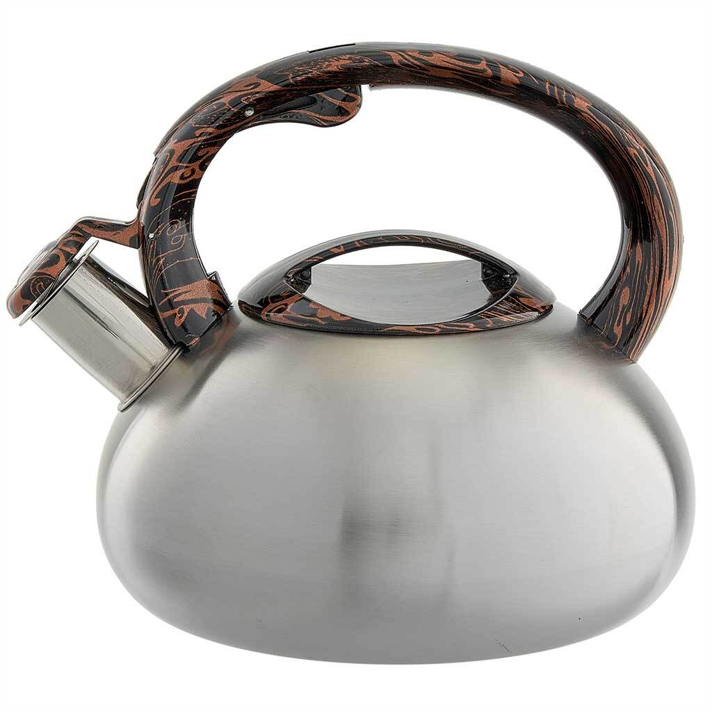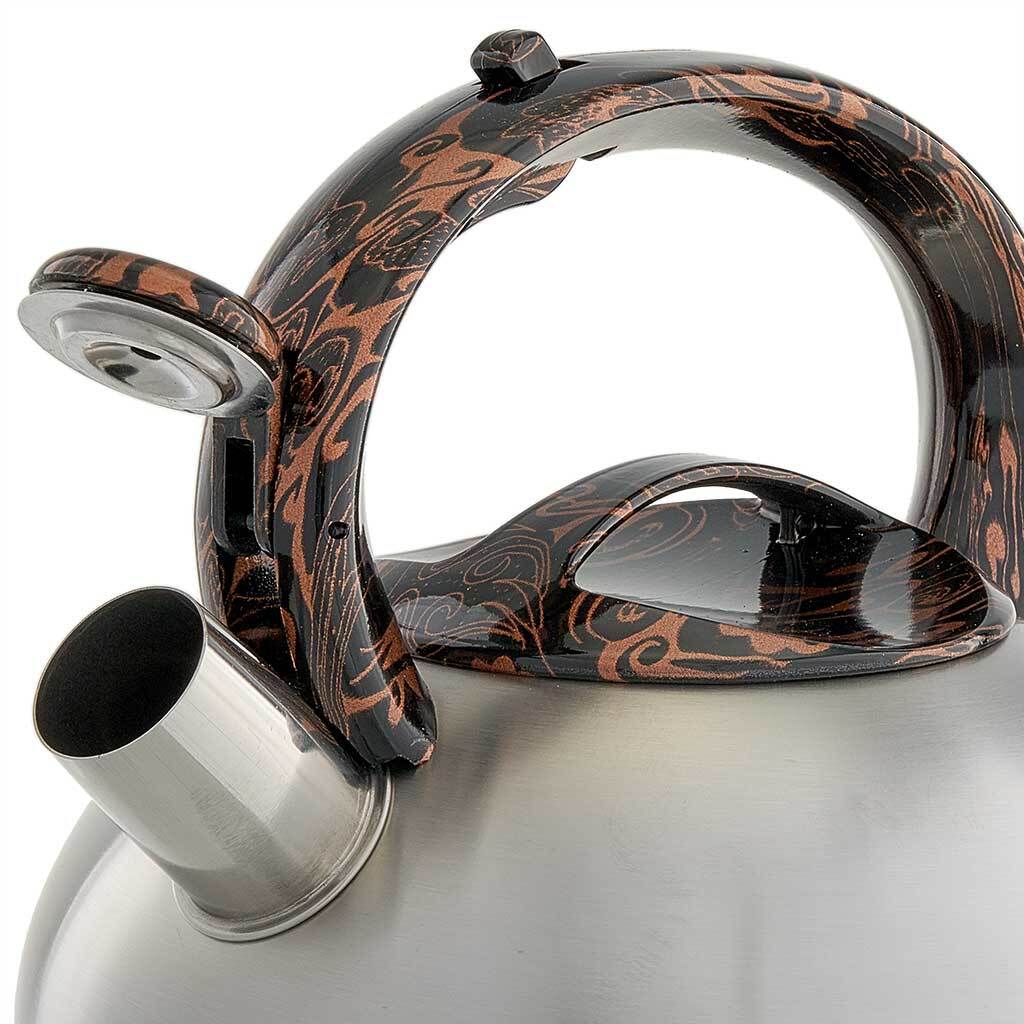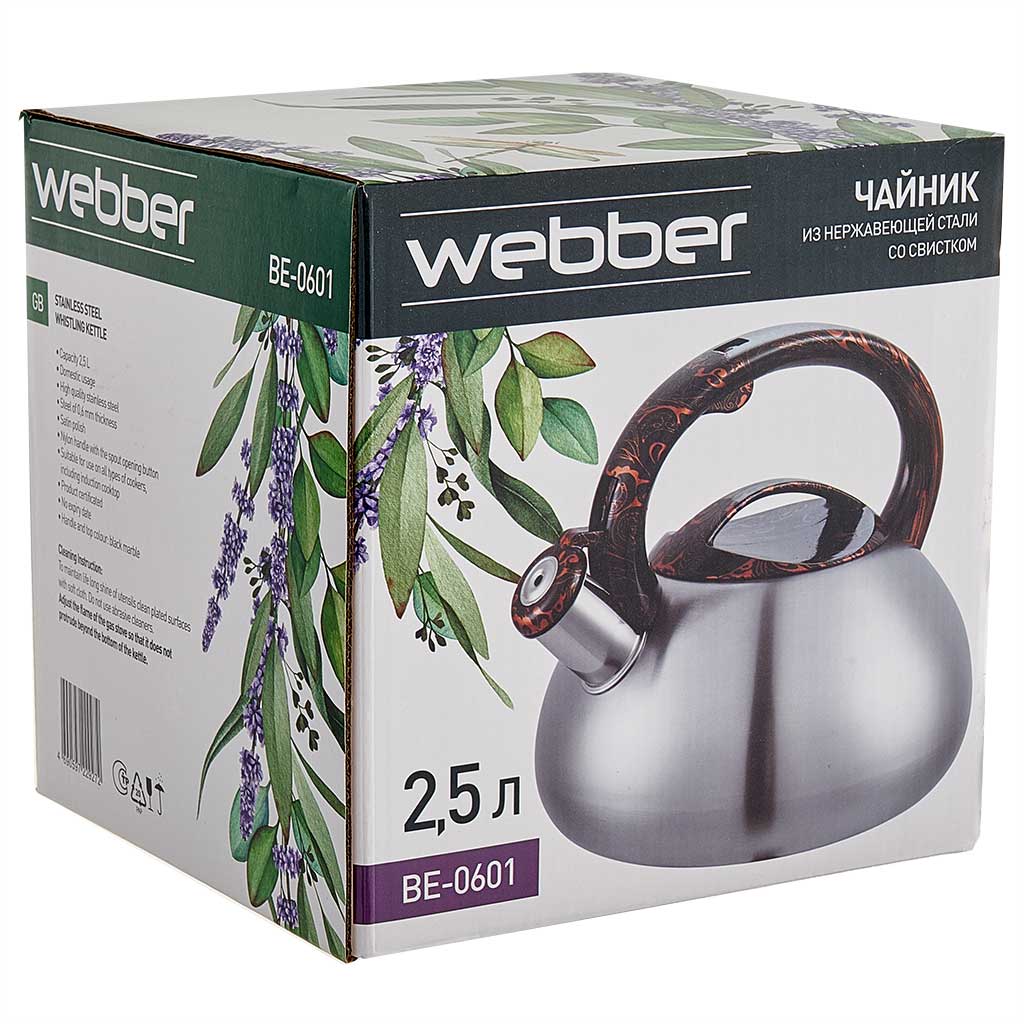 Чайник со свистком 2,5 л из нержавеющей стали, индукционное дно, сатин WEBBER BE-0601 черный мрамор