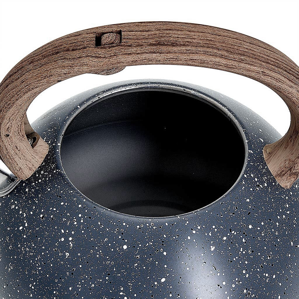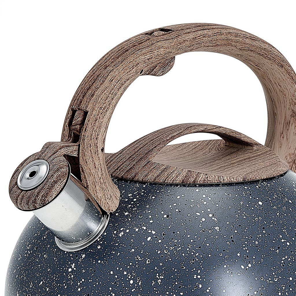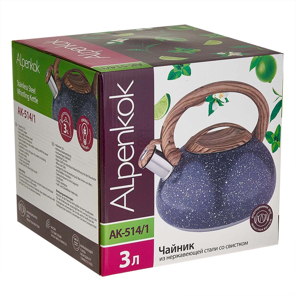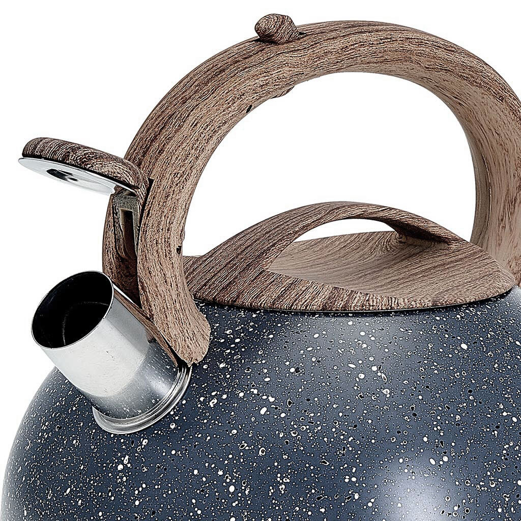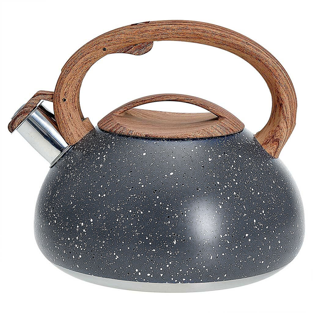 Чайник со свистком 3 л из нержавеющей стали, индукционное дно ALPENKOK AK-514/1 серый гранит, ручка светлое дерево