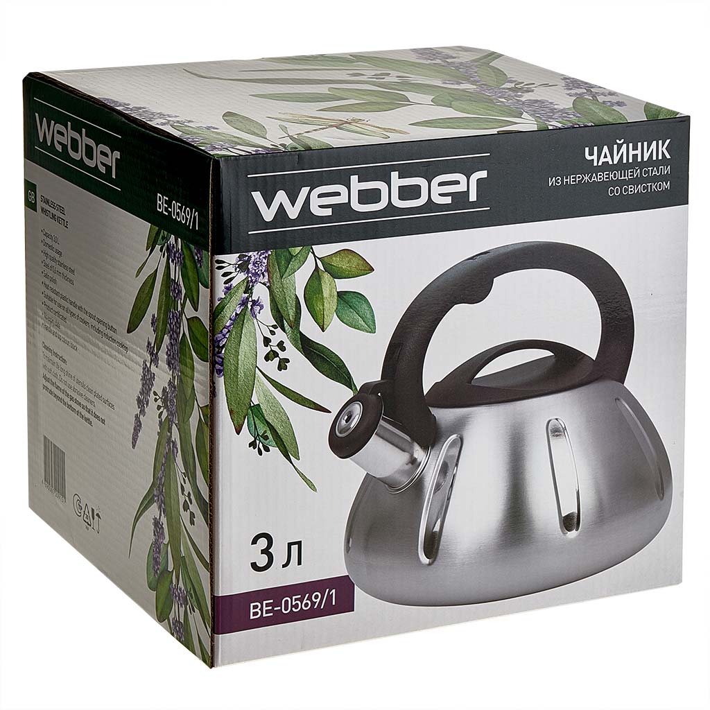 Чайник со свистком 3 л из нержавеющей стали, индукционное дно WEBBER BE-0569/1 сатин, черный