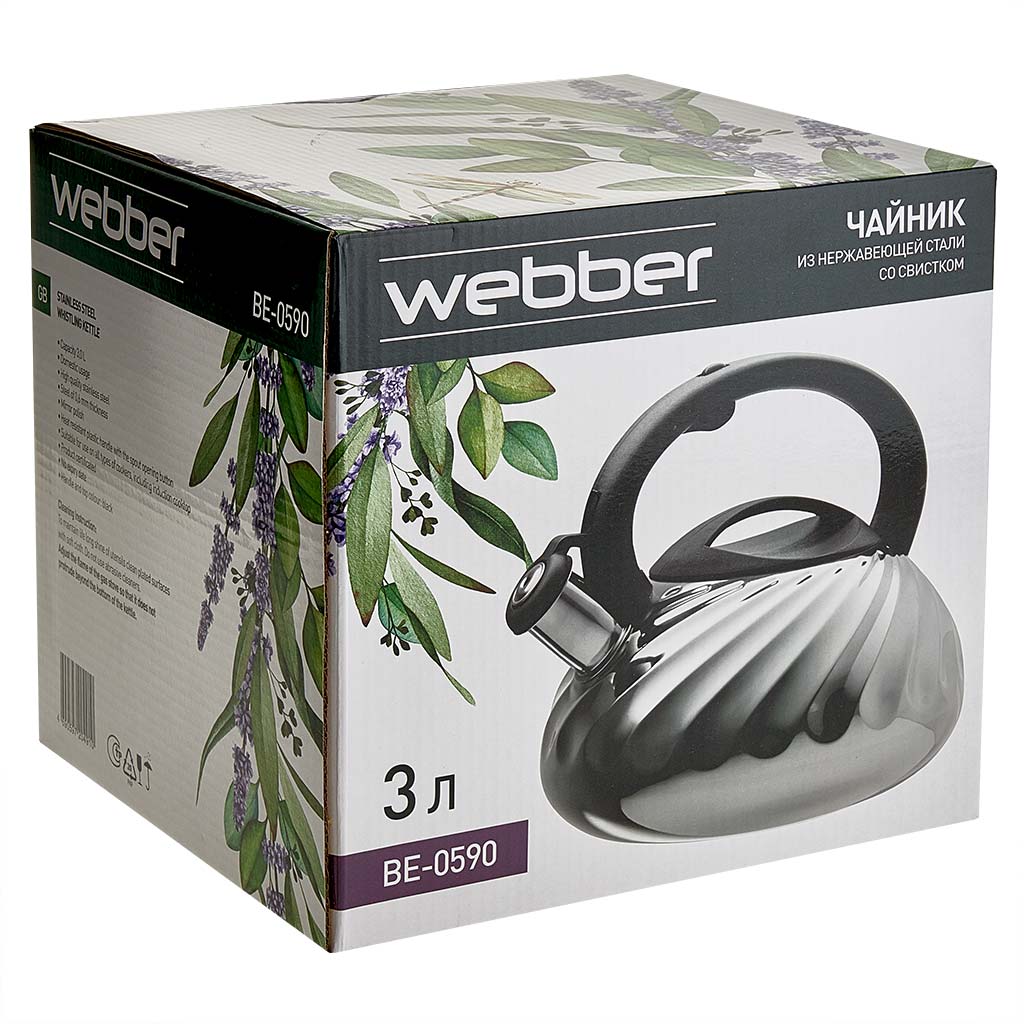 Чайник со свистком 3 л из нержавеющей стали, индукционное дно WEBBER BE-0590 черный