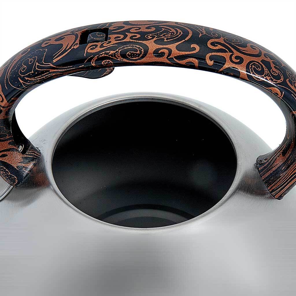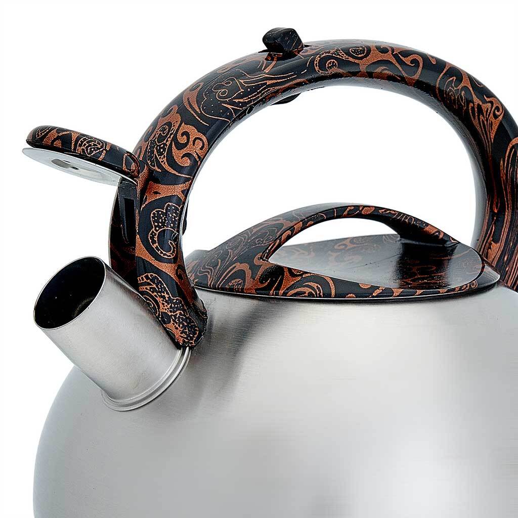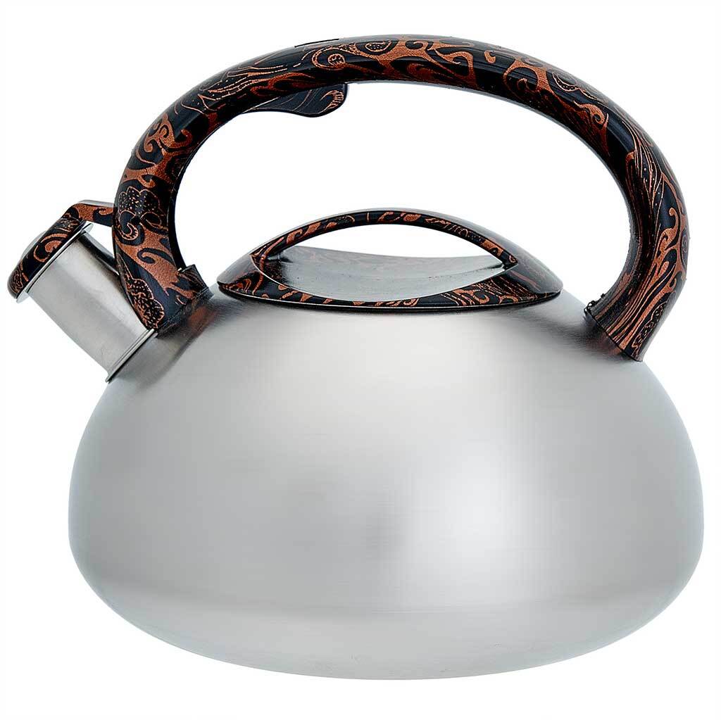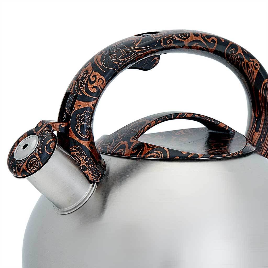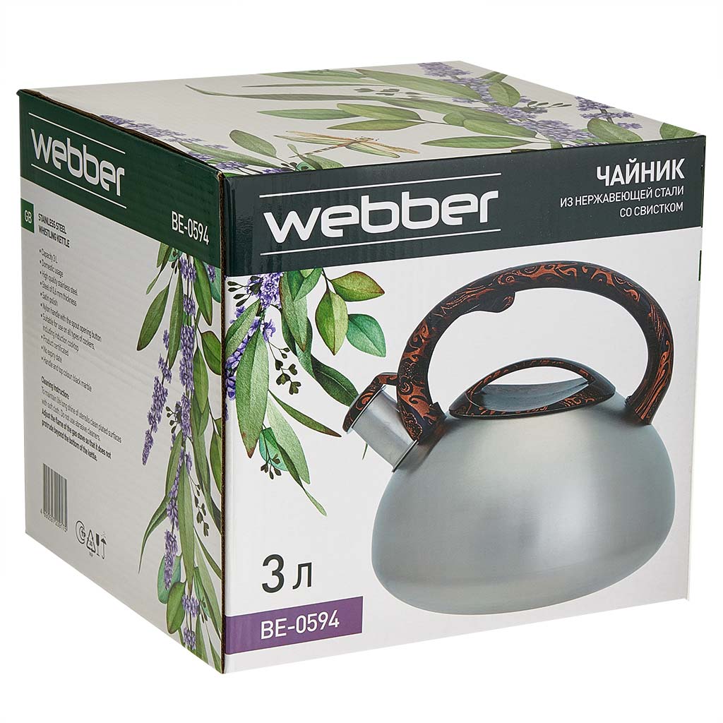 Чайник со свистком 3 л из нержавеющей стали, индукционное дно WEBBER BE-0594 сатин, черный мрамор