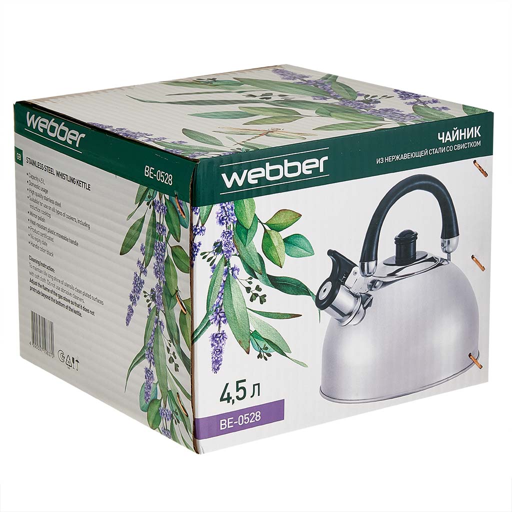Чайник со свистком 4,5 л из нержавеющей стали, индукционное дно WEBBER BE-0528 черный