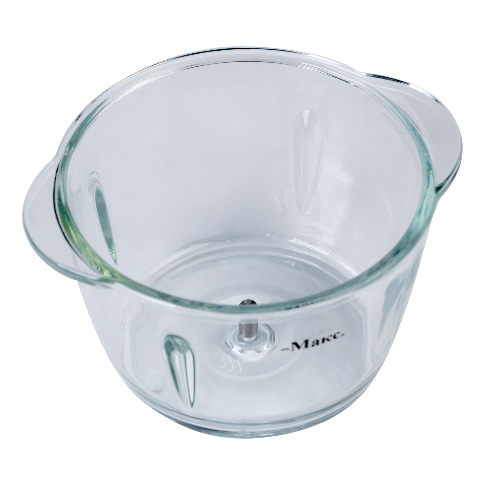 Стеклянная чаша объемом 1,2 л, позволяет измельчать большой объем продуктов.