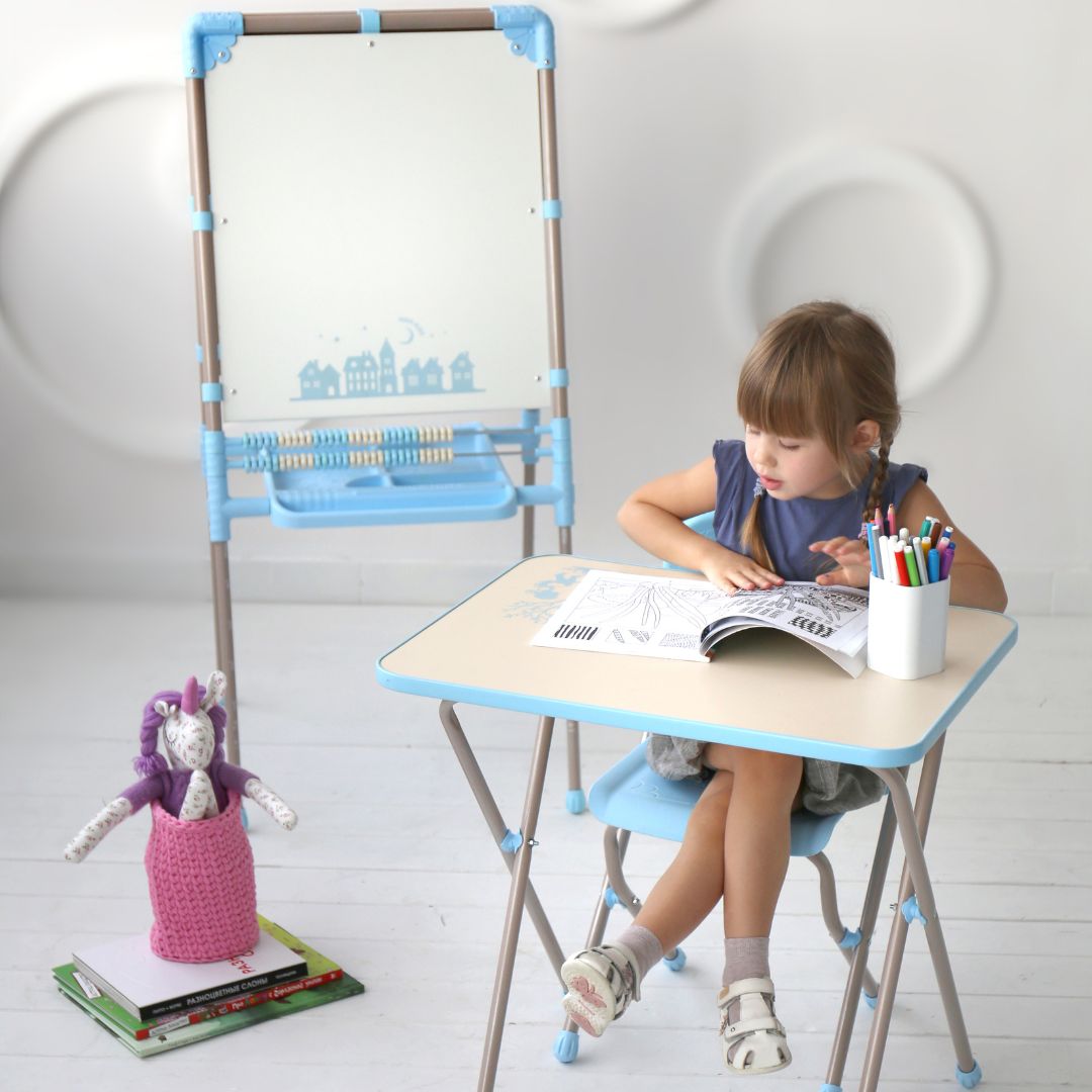 Комплект складной мебели, состоящий из стола и стула, с классическим дизайном в стиле «Ретро". Для детей в возрасте от 3 до 7 лет. Отлично сочетается с доской знаний - мольбертом «Ретро», арт. М2Р