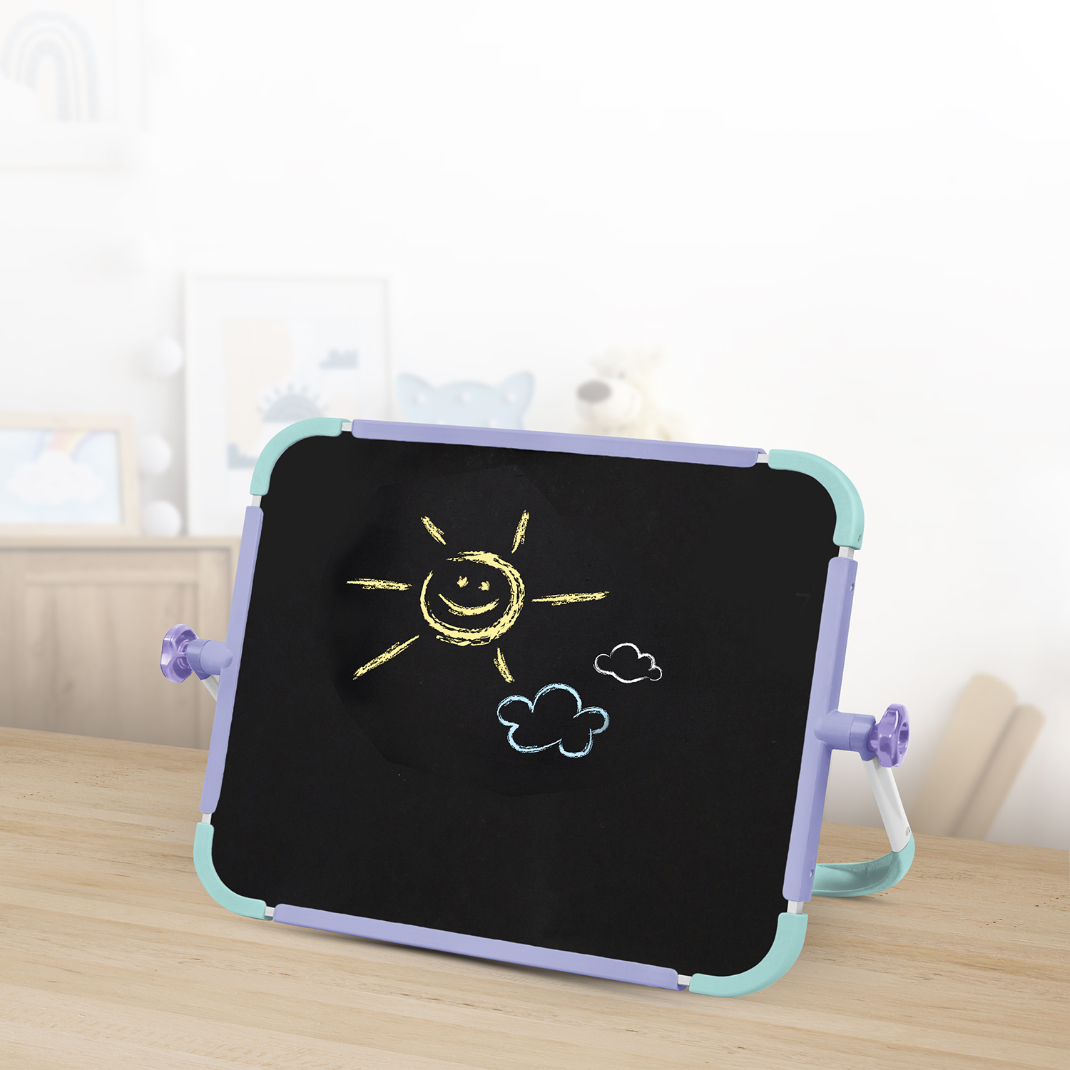 • 2 рабочие поверхности: для рисования мелками, борд-маркерами и игр с магнитами