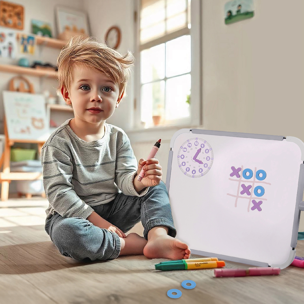 • 2 рабочие поверхности: для рисования мелками, борд-маркерами и игр с магнитами