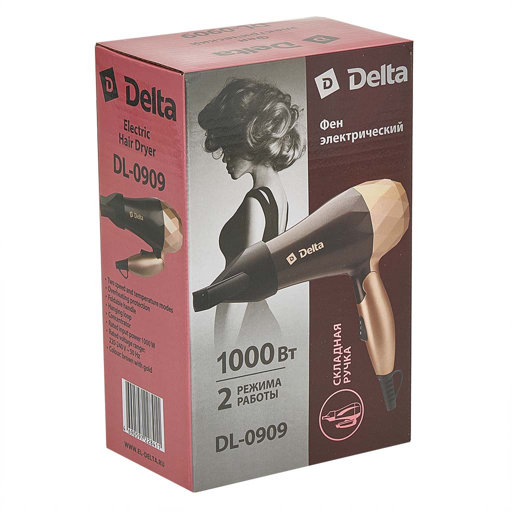 Фен 1000 Вт DELTA DL-0909 коричн. с золотом
