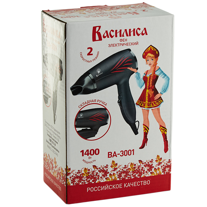 Фен 1400 Вт ВАСИЛИСА ВА-3001 черный с красным
