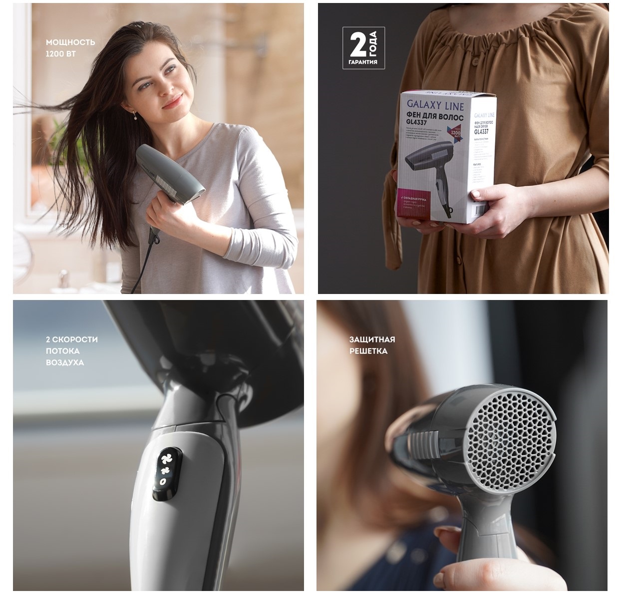 Стильный компактный фен GALAXY LINE GL4337 - незаменимый прибор для дома и поездок.