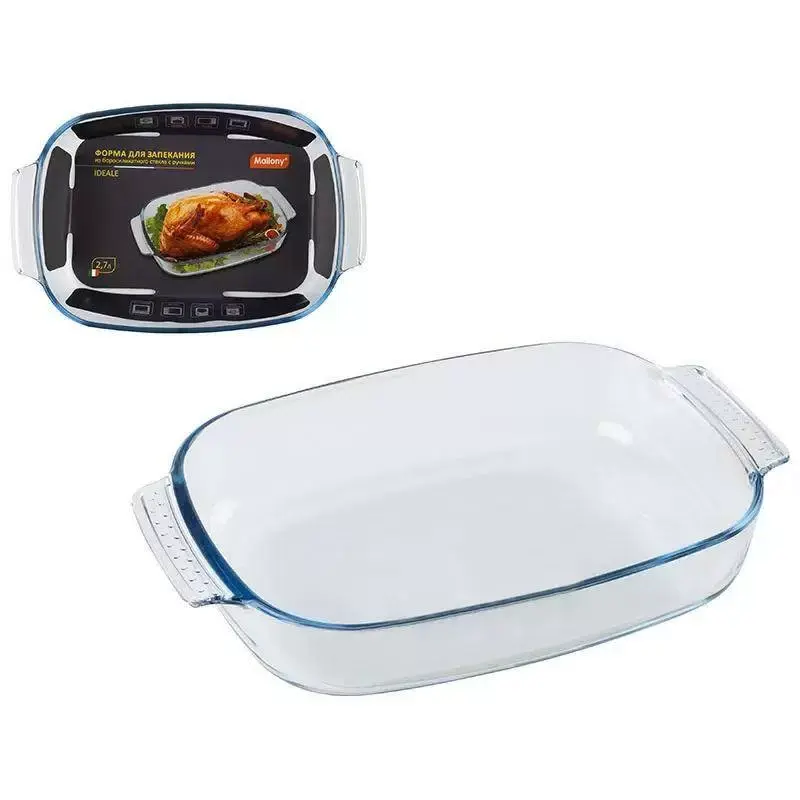 Форма для запекания 2,7 л с ручками, прямоугольной формы, из боросиликатного стекла