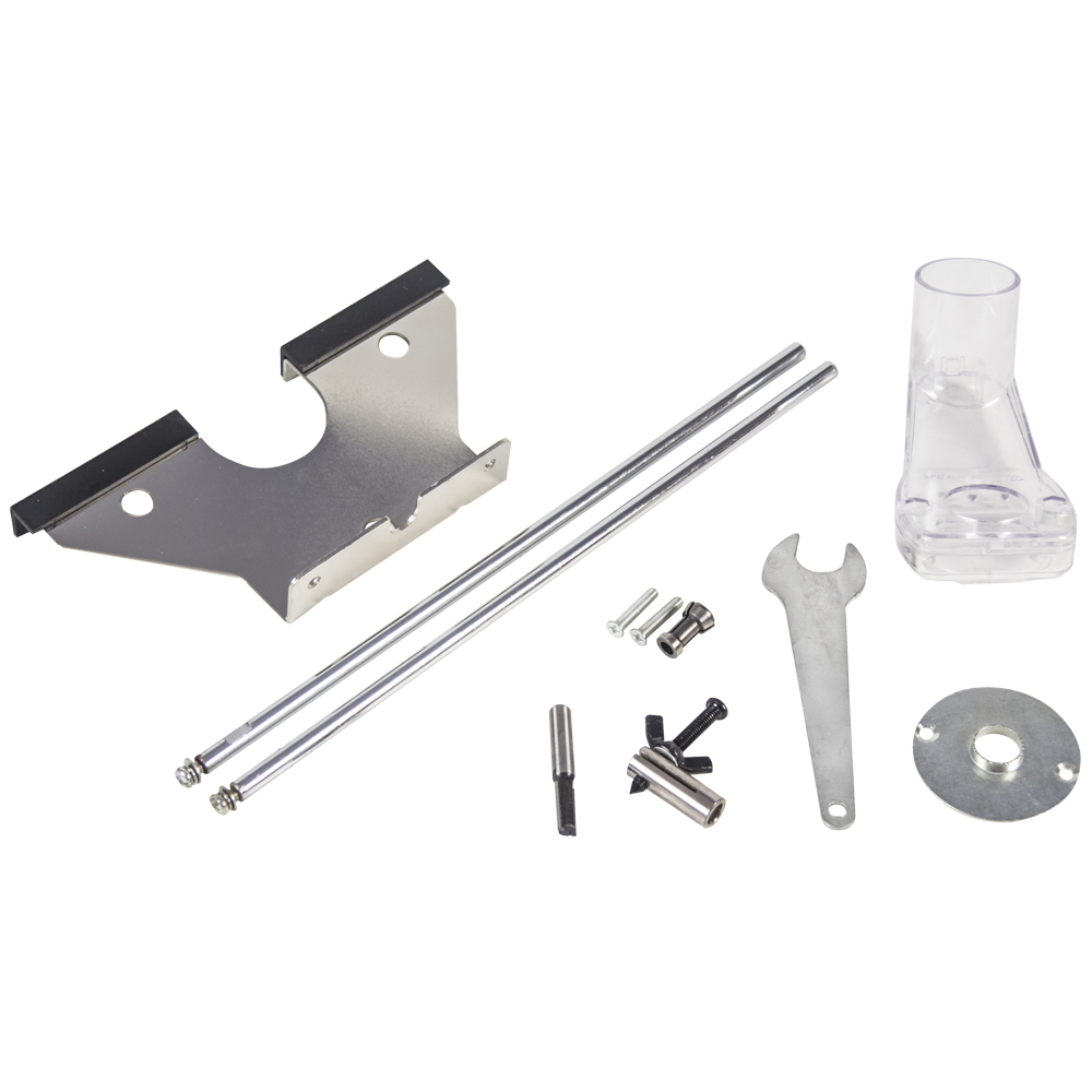 - КОМПЛЕКТАЦИЯ: Параллельный упор (2 направляющие, упор, метчик ), фреза, ключ для цангового патрона, дополнительная цанга (6 мм), копировальная втулка(фальца).