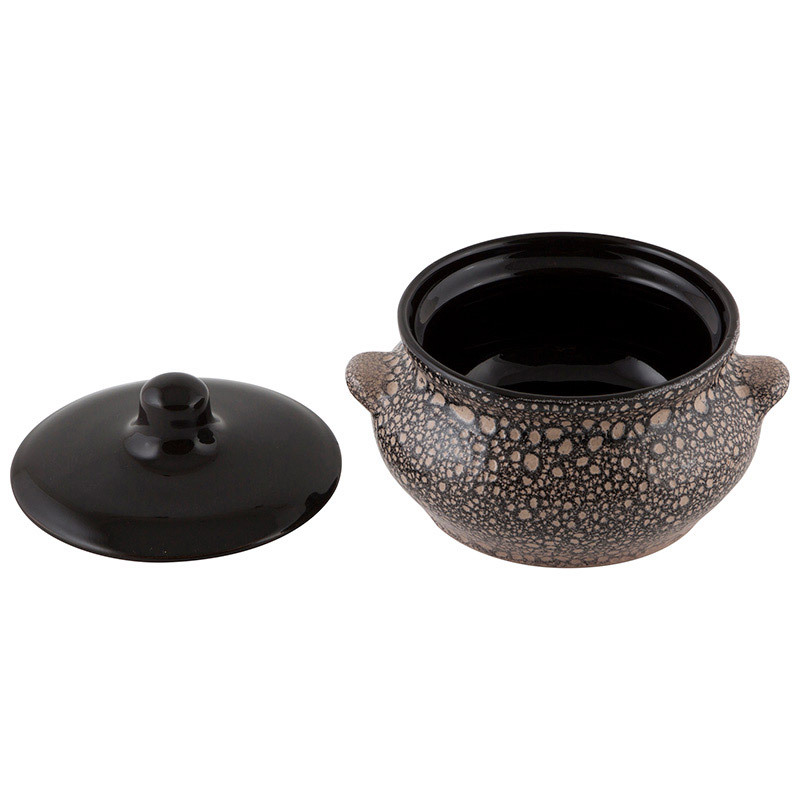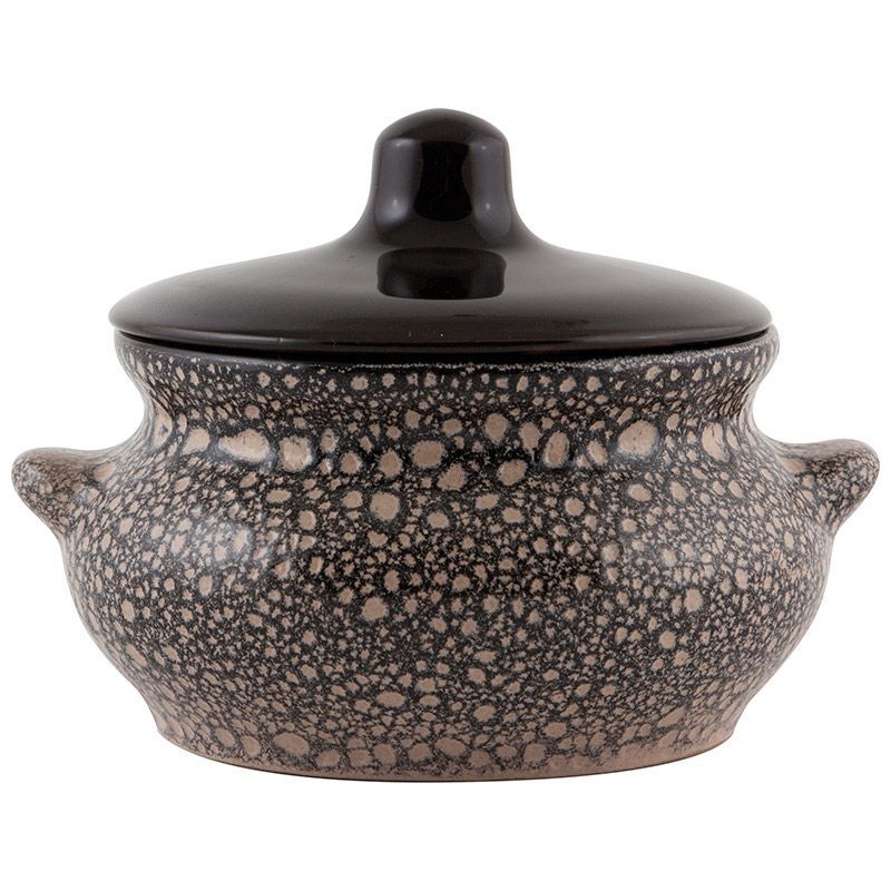 Горшок для запекания очень удобной формы. Идеально подходит для одной порции. Уникальные свойства красной глины и толстые стенки изделия обеспечивают «эффект русской печи» при приготовлении блюд. Это значит, что еда будет очень вкусной, сочной и здоровой. Покрытие внешне напоминает мрамор