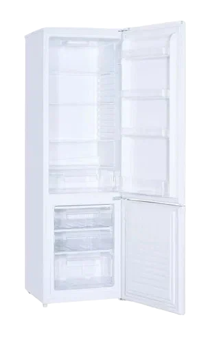 Холодильник Kraft KF-DC230W оснащен двумя камерами – холодильной (объемом 160 л) и морозильной (объемом 75 л). Наличие стеклянных полок, навесных полок и выдвижных ящиков позволяет удобно распределять хранение различных продуктов в камерах.