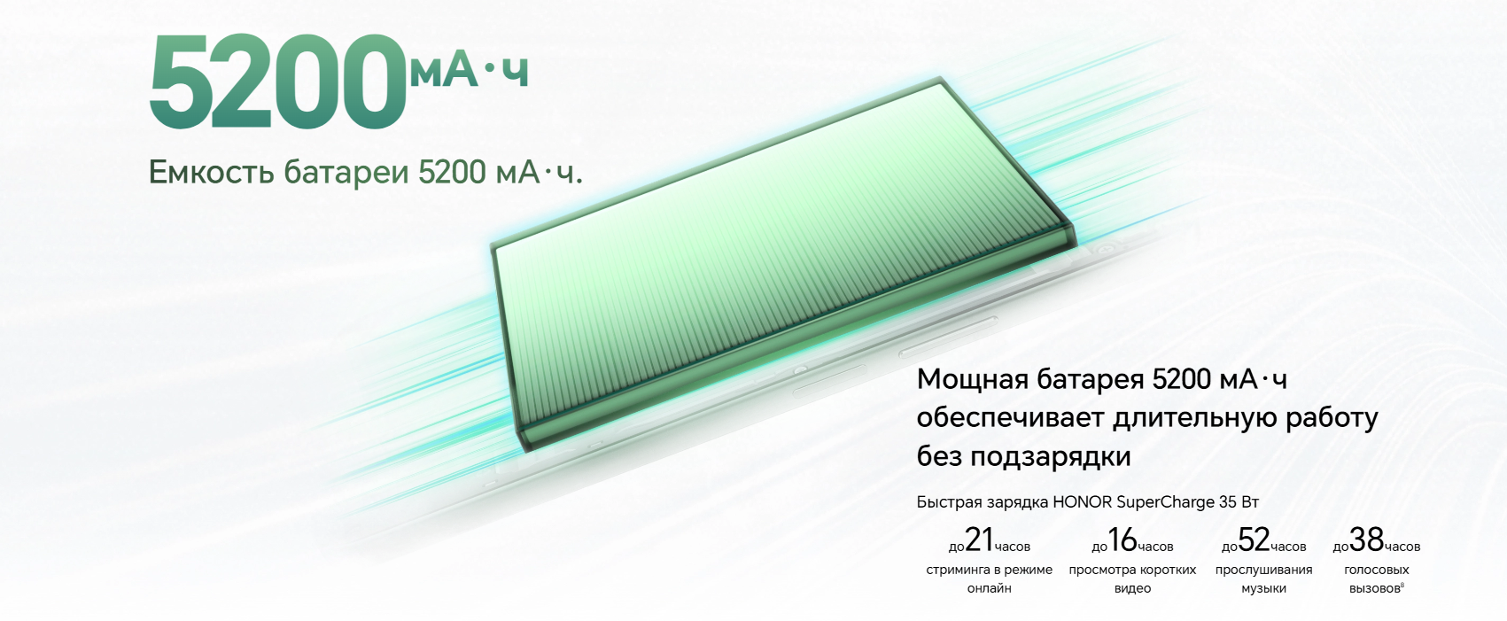 Поддержка HONOR SuperCharge до 35 Вт (11 В / 3,2 А)