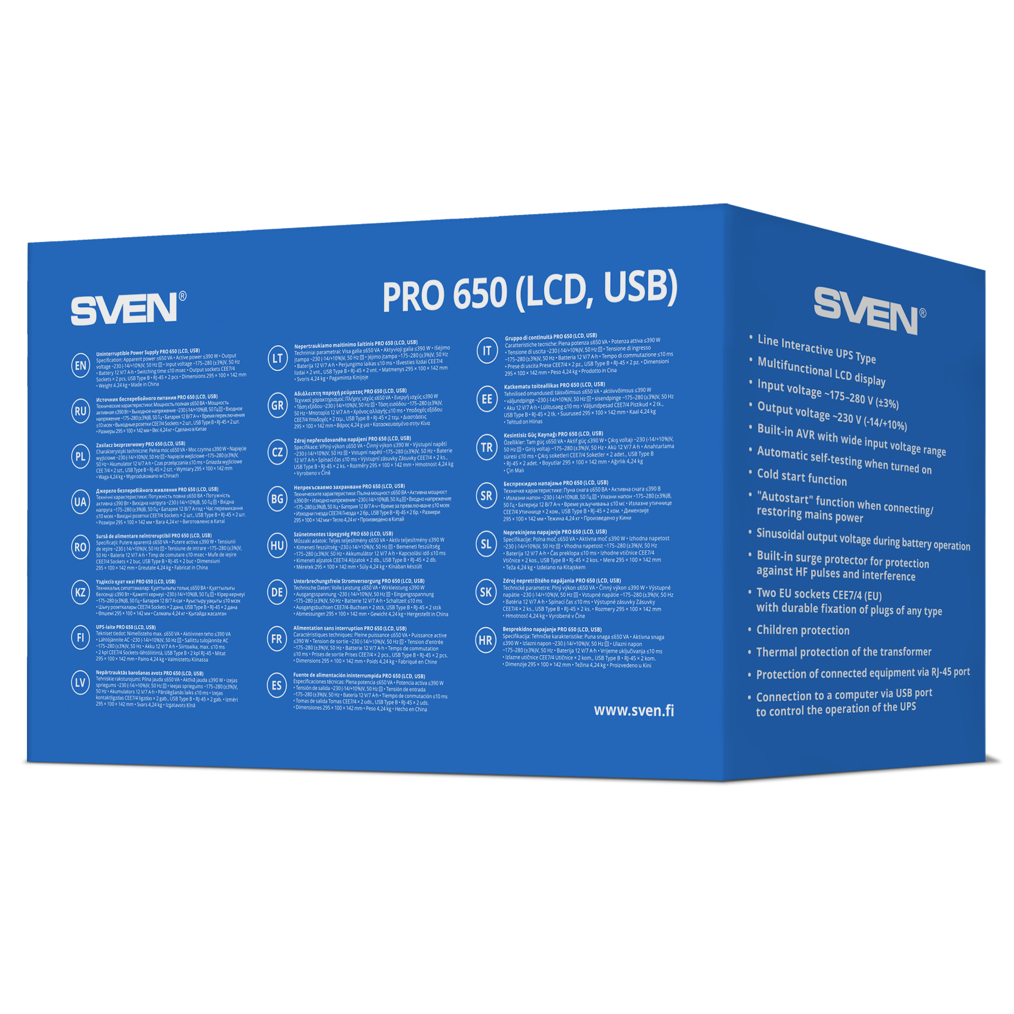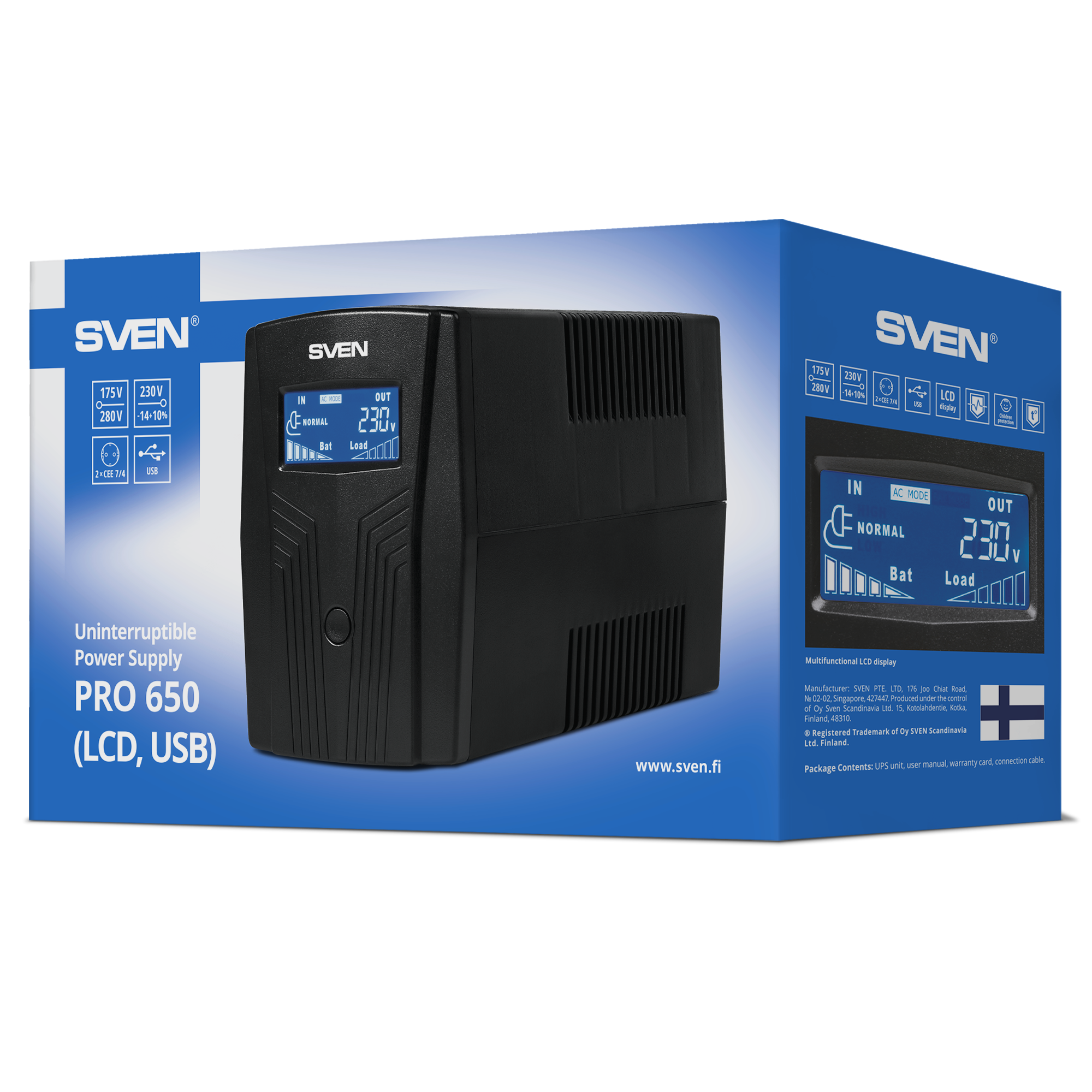 Источник бесперебойного питания SVEN Pro 650 (LCD, USB)