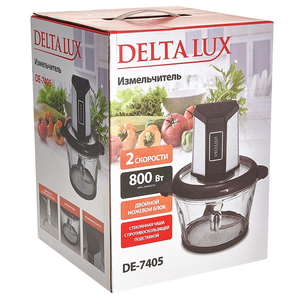Измельчитель электрический 800 Вт, 2 л DELTA LUX DE-7405 черный