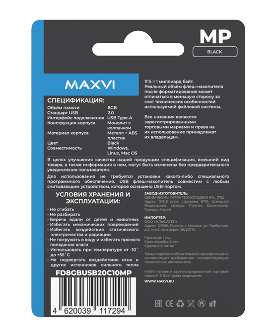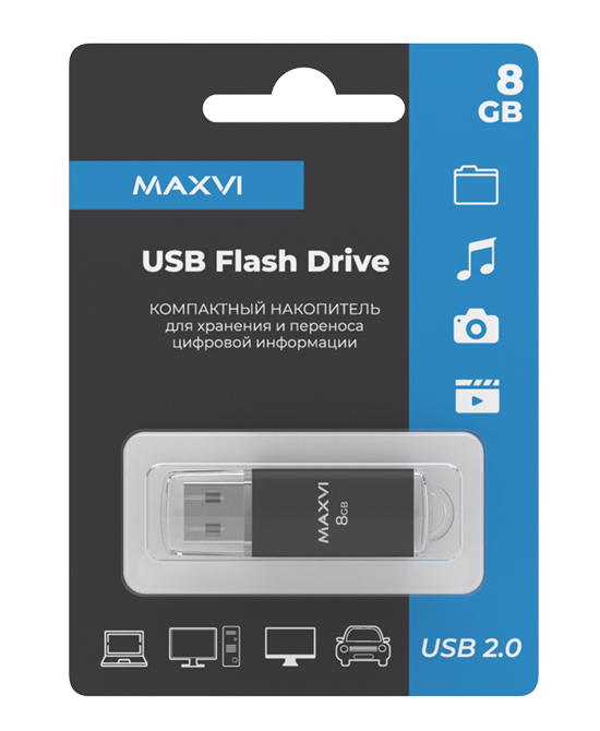 Карта памяти Maxvi USB MP 8GB black (FD8GBUSB20C10MP)