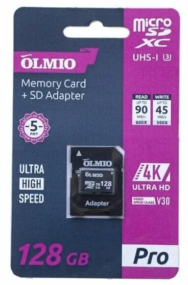 Карта памяти OLMIO microSDXC 128GB Extreme, c адаптером (45590)