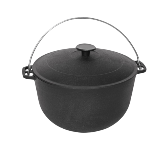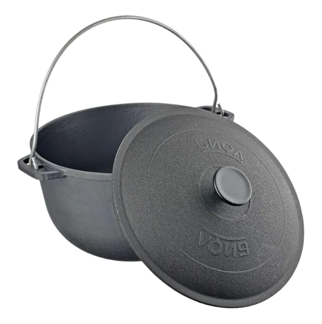 изготовлены из высококачественного литого чугуна, благодаря чему обеспечивают абсолютно равномерный нагрев со всех сторон и надолго сохраняют тепло. Благодаря удобному подвесу идеально подходит для готовки блюд на мангале или костре.