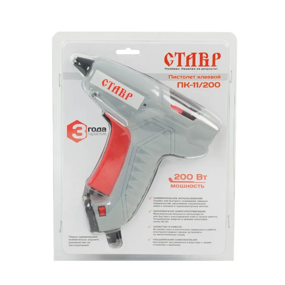 - РАСШИРЕННАЯ КОМПЛЕКТАЦИЯ: Инструмент поставляется в блистере с 2-мя клеевыми стержнями.