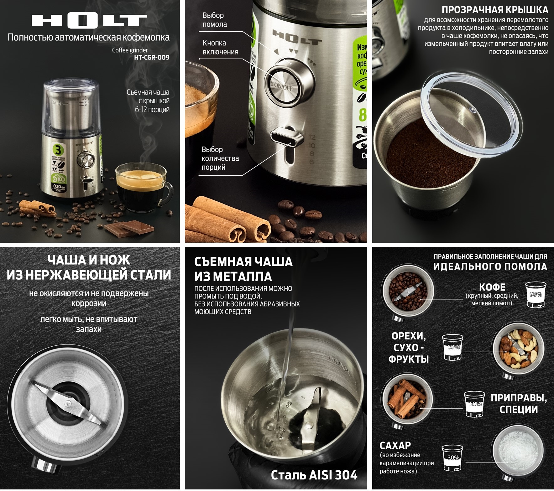 Кофемолка HOLT HT-CGR-009