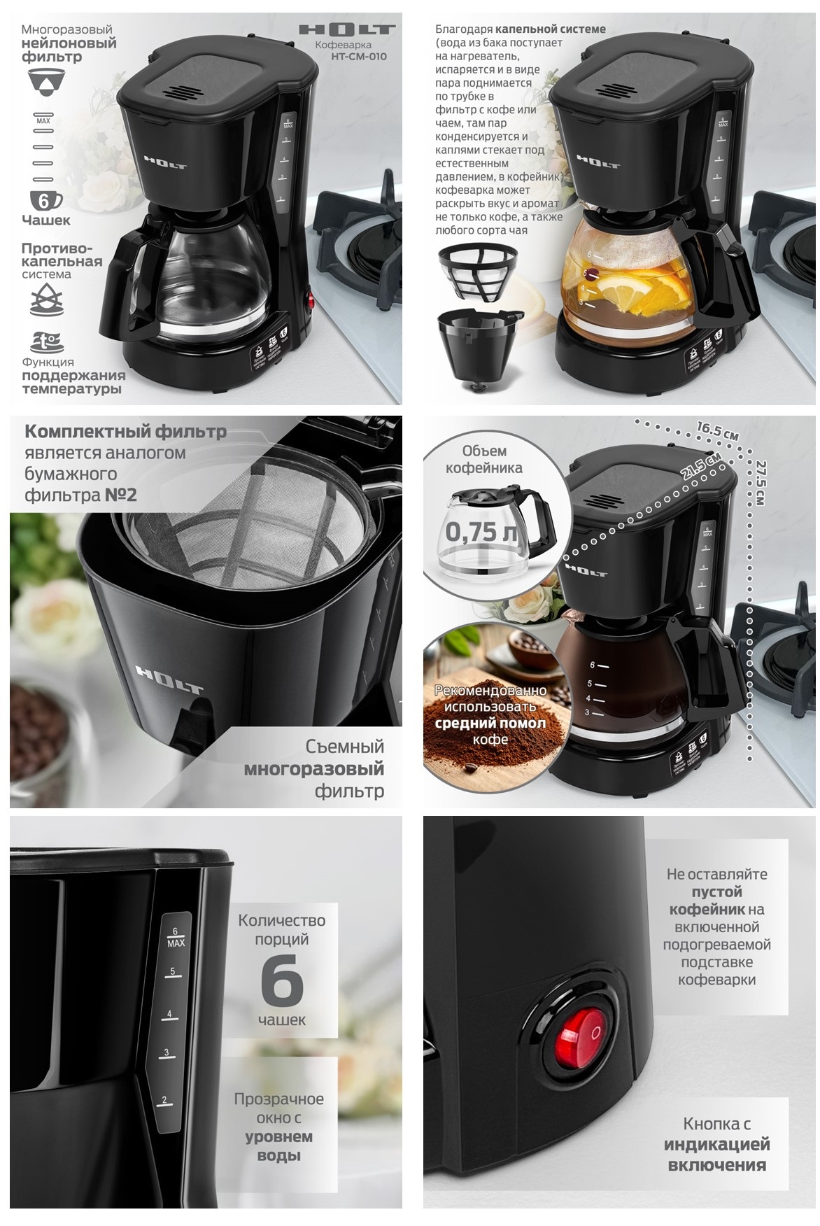 Кофеварка HOLT HT-CM-010