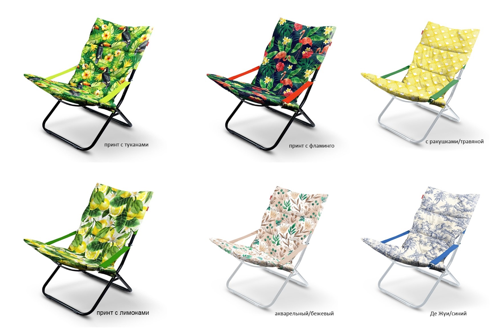 Складное кресло-шезлонг с мягким матрасом для комфортного отдыха на открытом воздухе и в помещении.