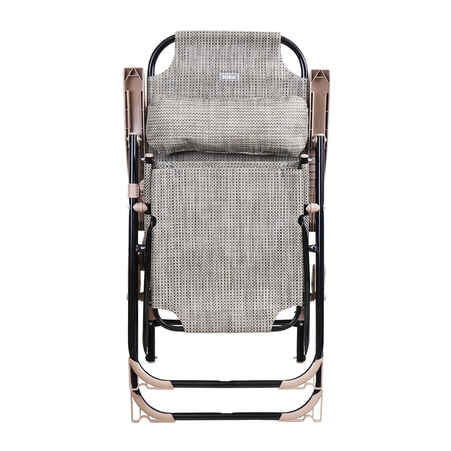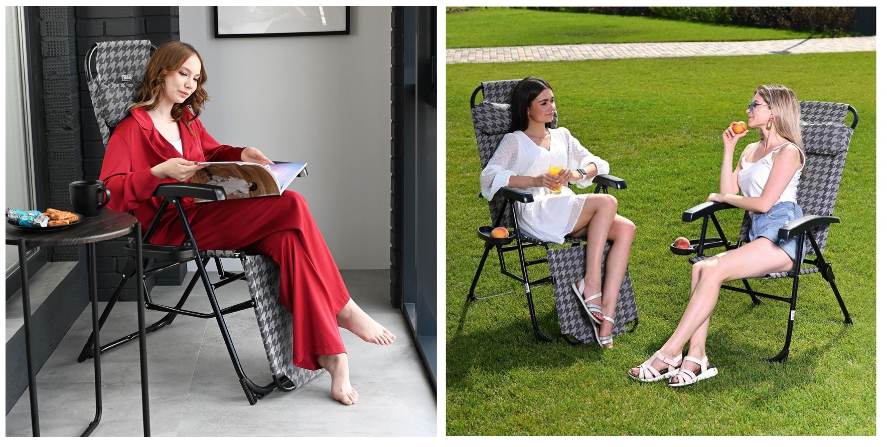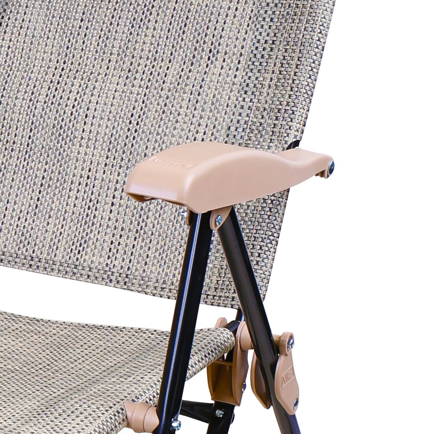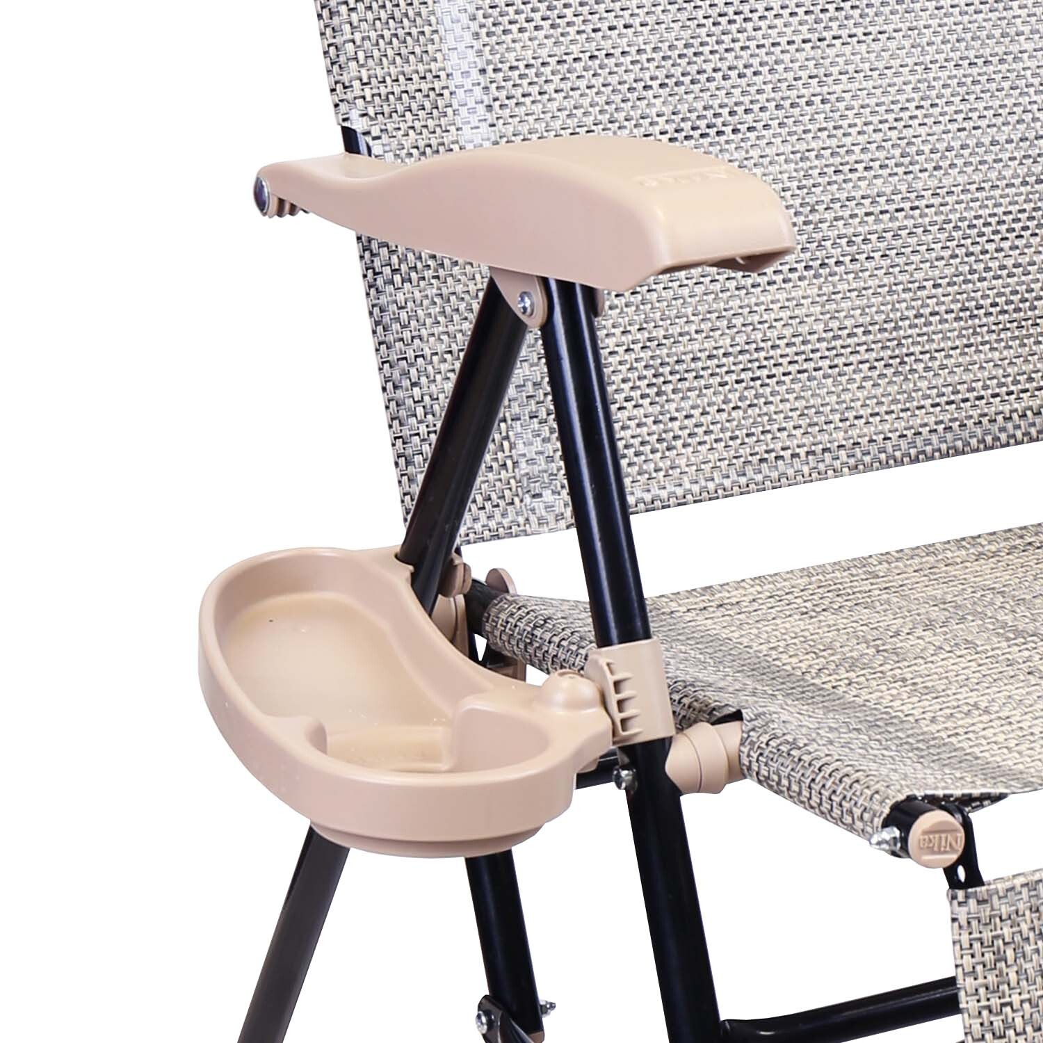 Классическая модель складного кресла-шезлонга с подножкой, дополненная съемной полкой с подстаканником.