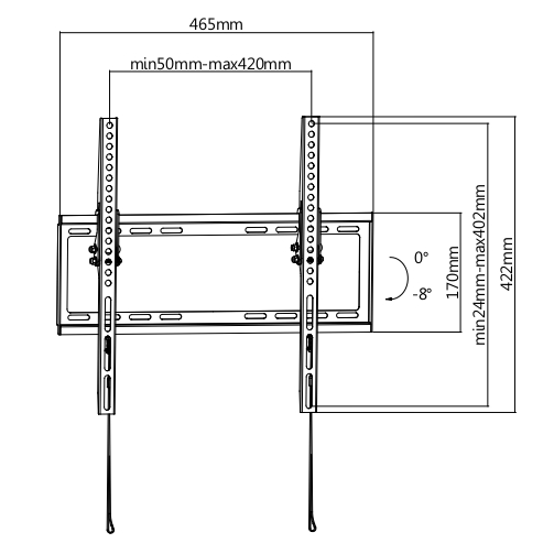 Угол наклона: от -8 до 0