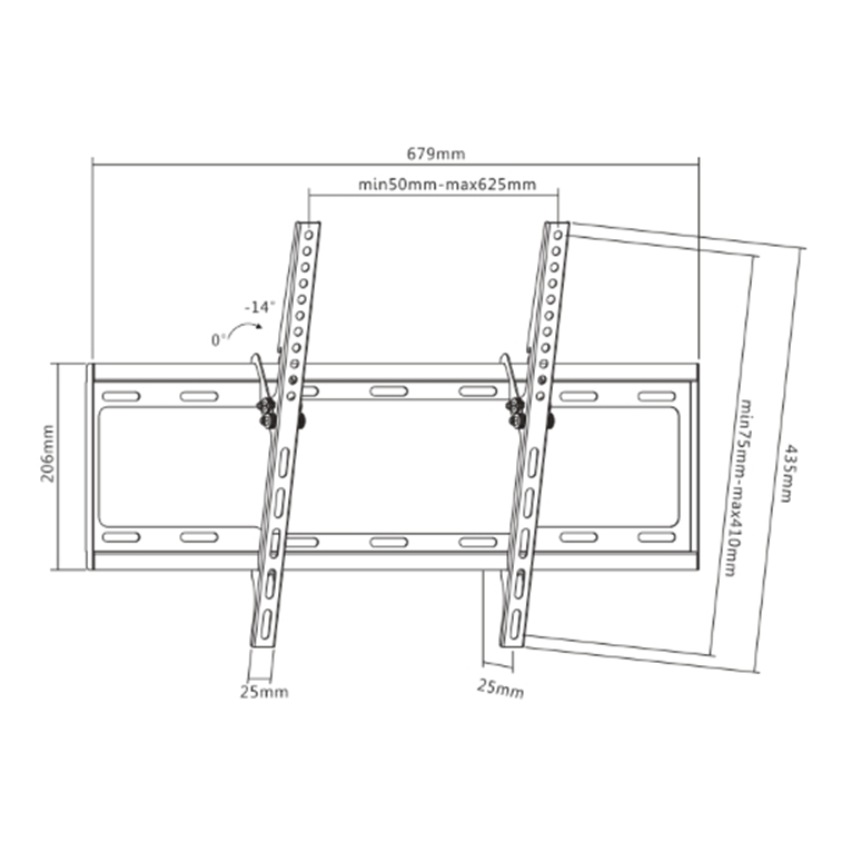 Расстояние от стены(мм): от 25 до 25