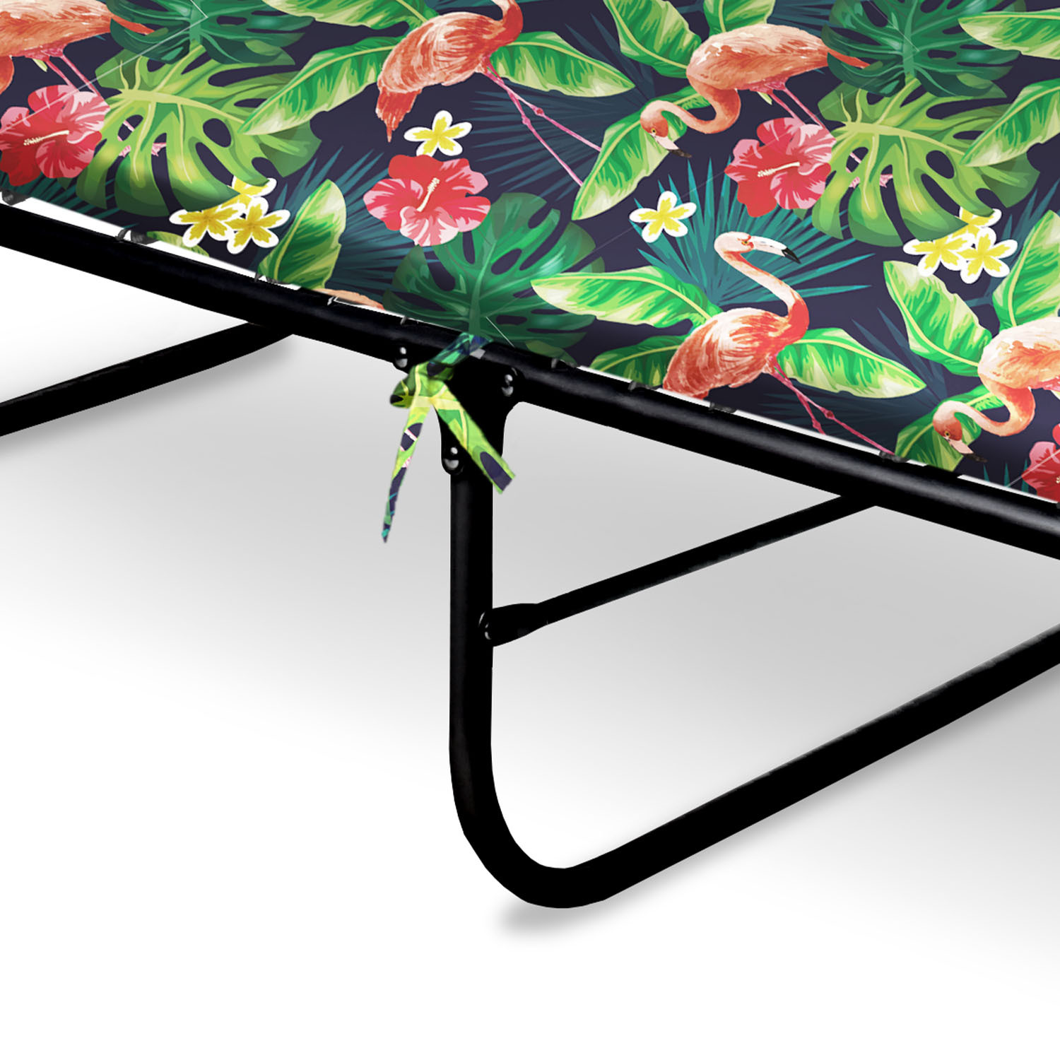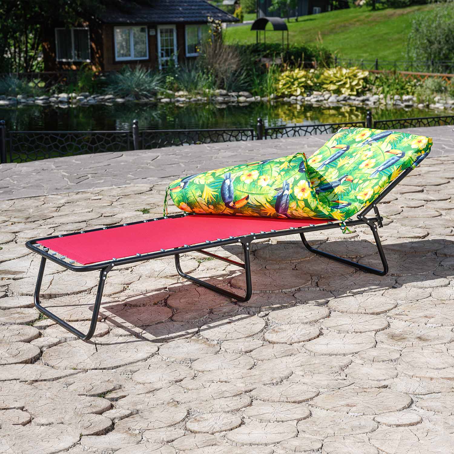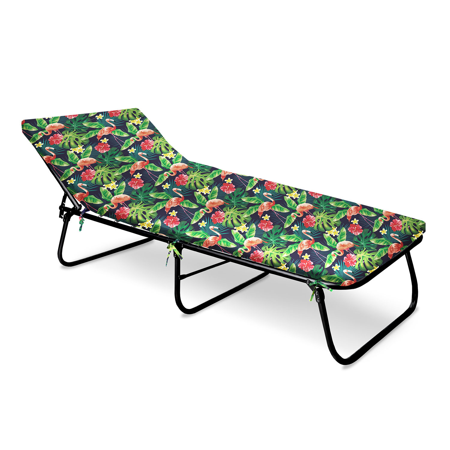 Раскладная кровать с мягким матрасом для бытового использования в домашних условиях и отдыха на природе.