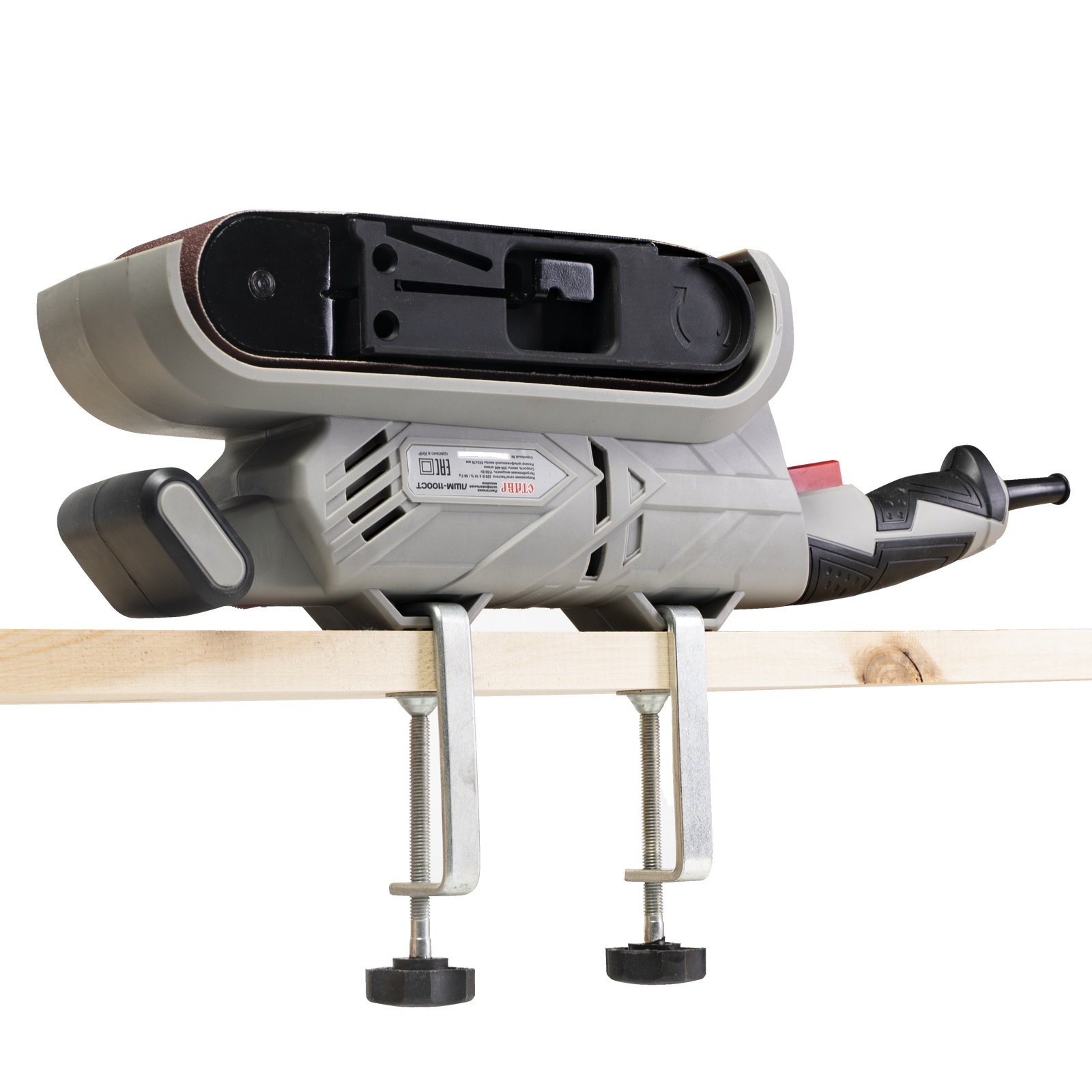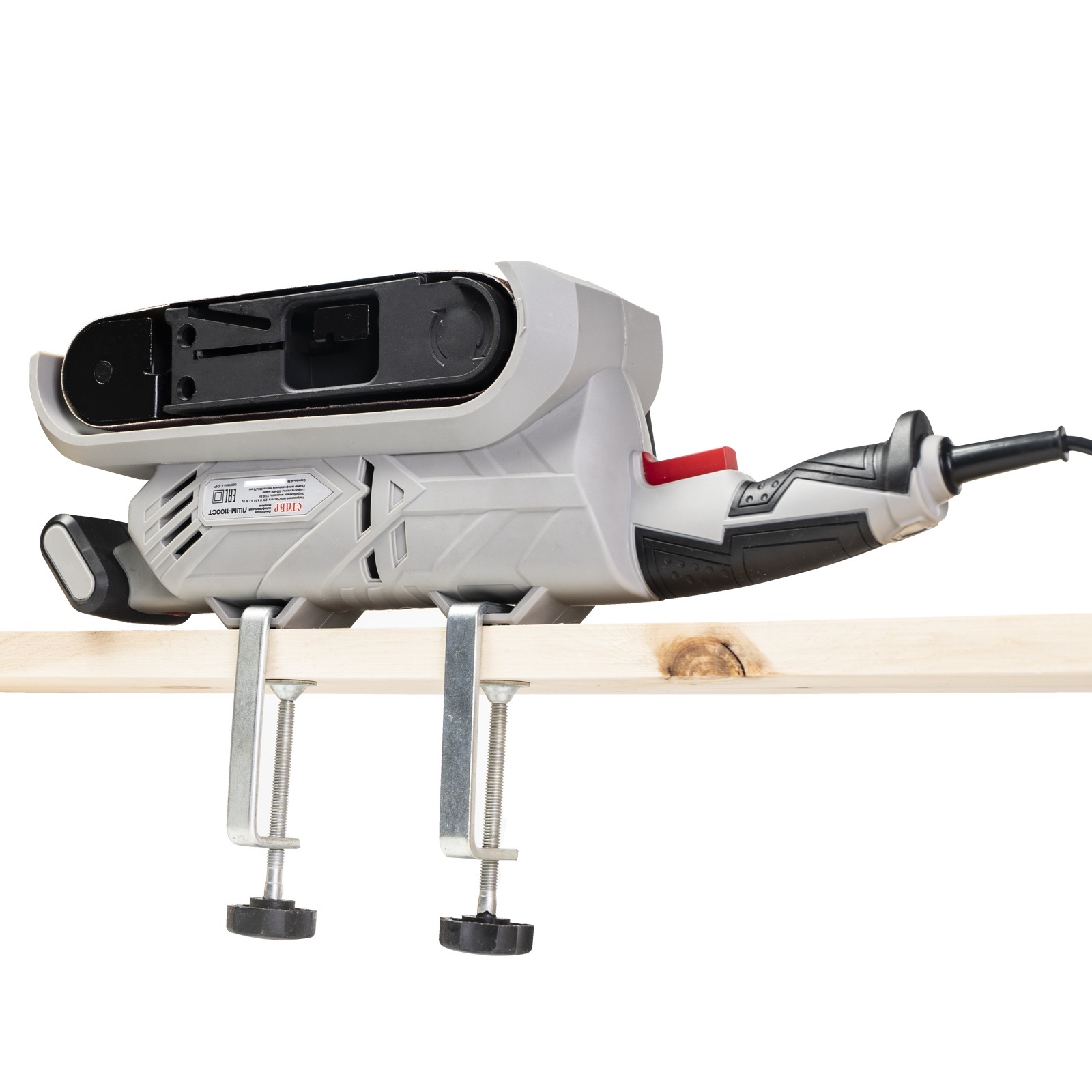 - БЫСТРАЯ СМЕНА ШЛИФОВАЛЬНОЙ ЛЕНТЫ: шлифовальная лента быстро и легко заменяется с помощью специального рычага.
