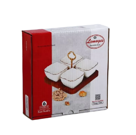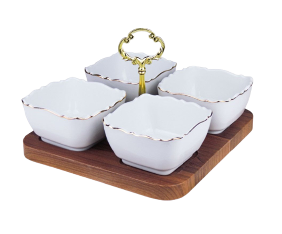 Менажница дерево +4 секций фарфор Lemoges “Квадрат”отводка золотом