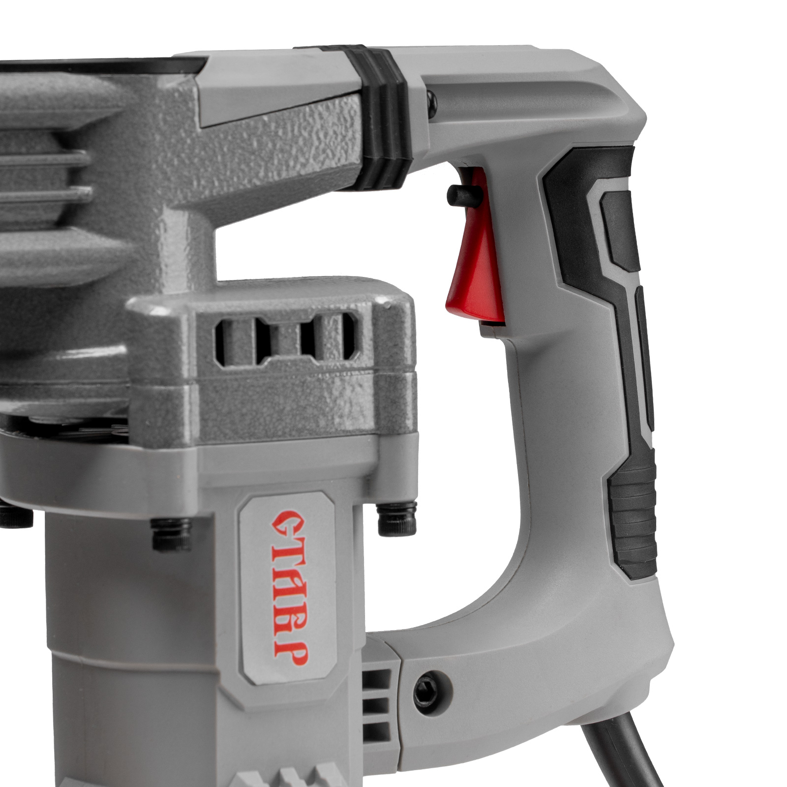 - ПОВОРОТНАЯ БОКОВАЯ РУКОЯТКА: Позволяет удобно и надежно удерживать отбойный молоток в процессе работы.