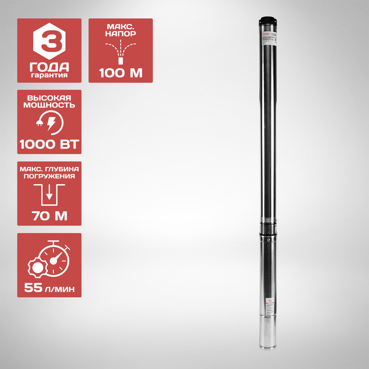 - МОЩНЫЙ НАПОР: позволяет поднимать воду на большую высоту, что актуально для глубоких скважин.