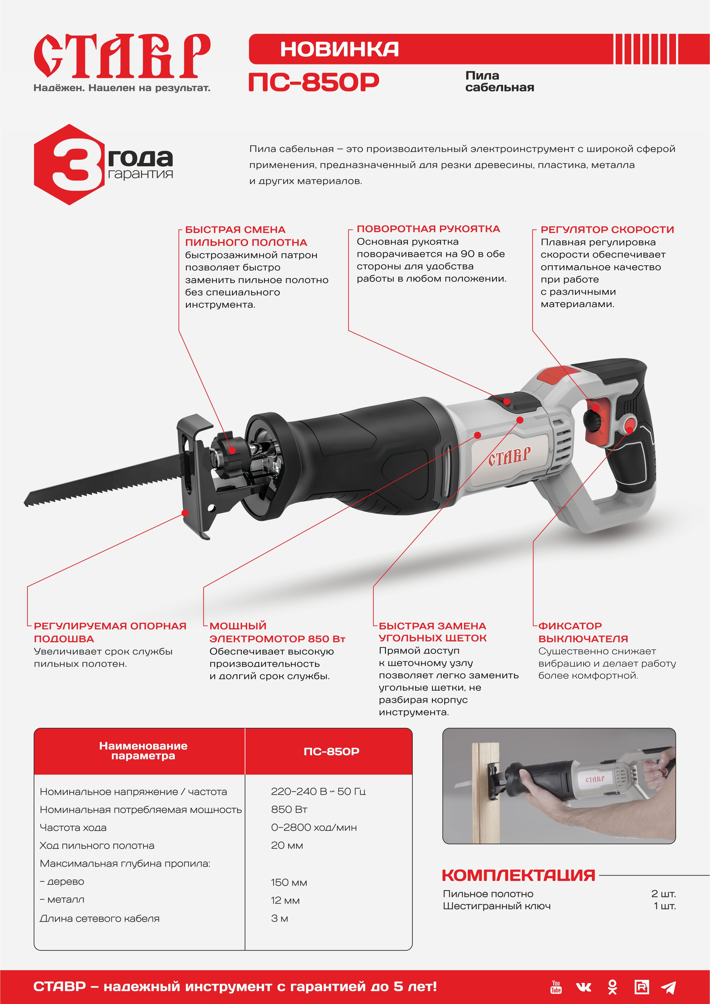 - МОЩНЫЙ ЭЛЕКТРОМОТОР 850 Вт: Обеспечивает высокую производительность и долгий срок службы.