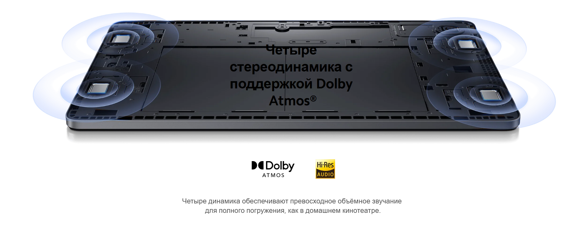 Четыре динамикаПоддержка Dolby Atmos®Аудио высокого разрешенияРазъем для наушников 3,5 мм