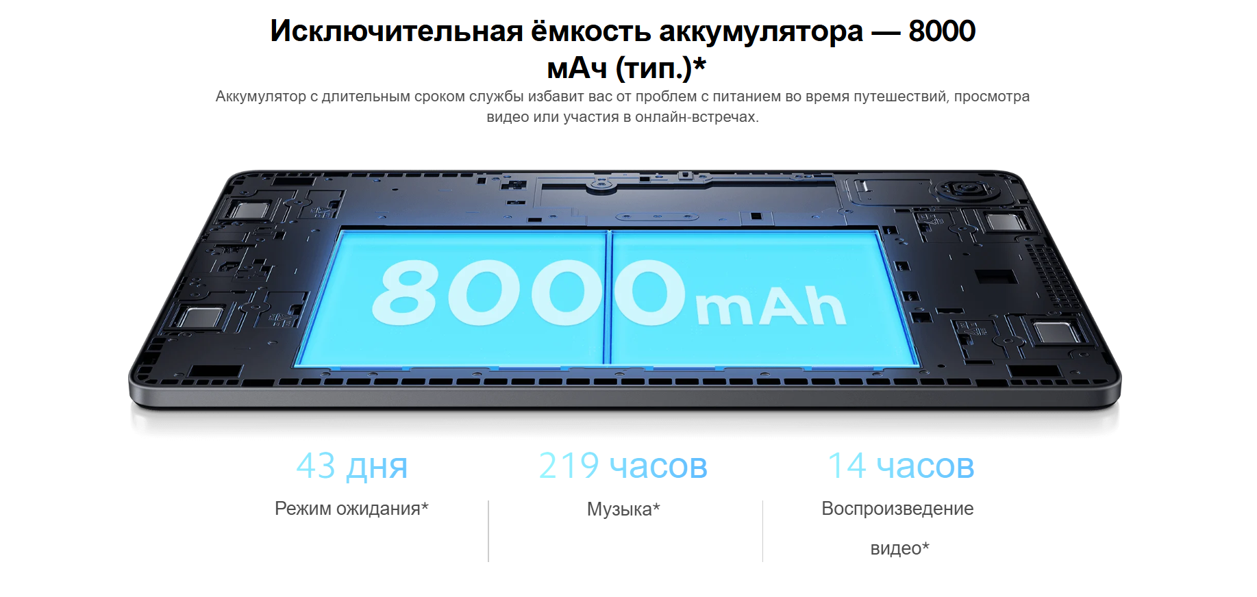 8000 мАч (тип.)Поддерживает зарядку мощностью 10 ВтUSB Type-C