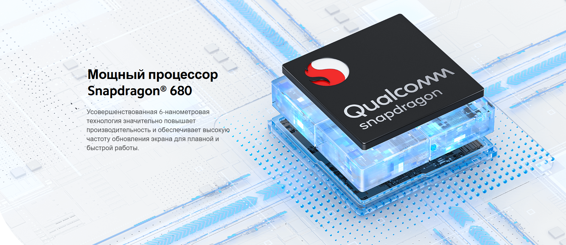 Мобильная платформа Snapdragon® 6806-нанометровый техпроцесс Процессор: 8 ядер, до 2,4 ГГц Графический процессор: Qualcomm® Adreno™