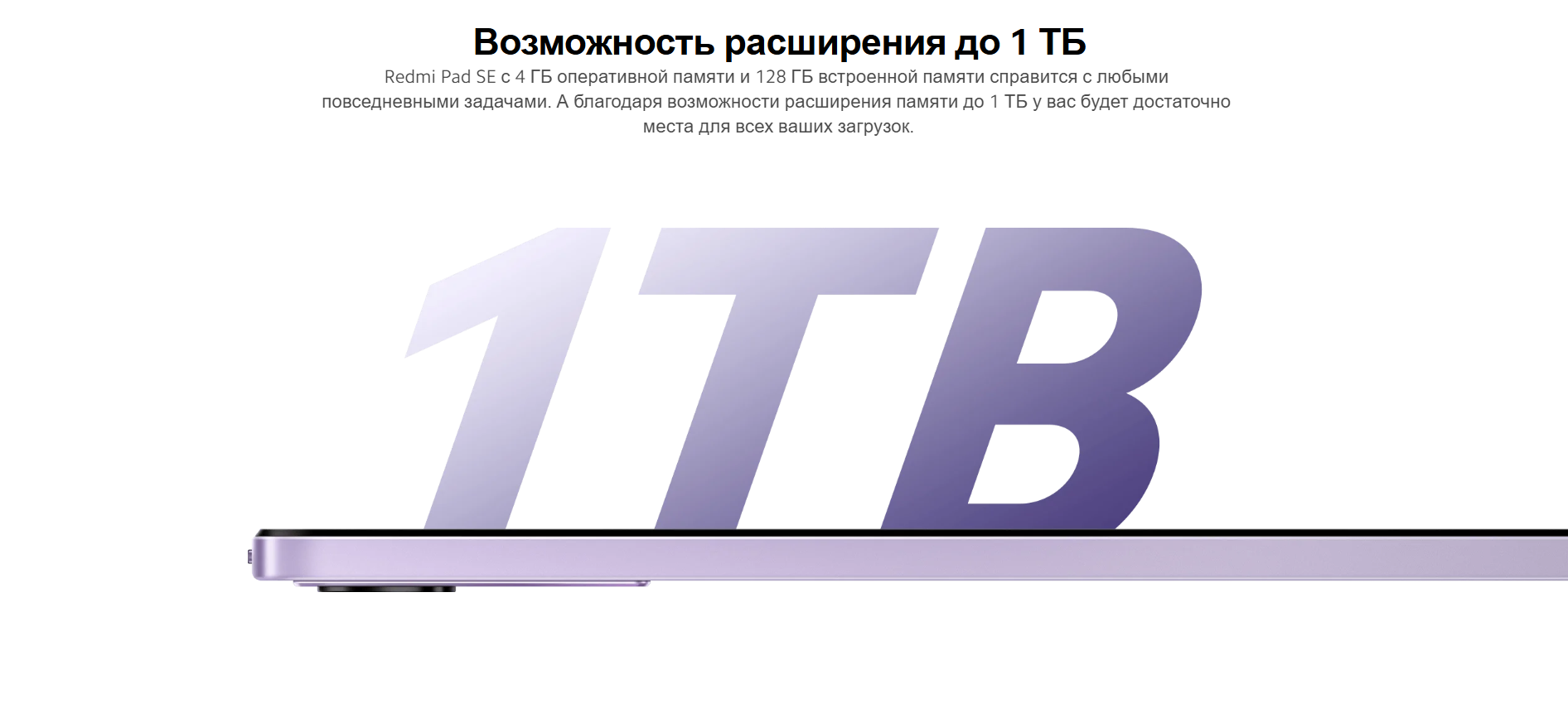 LPDDR4X + eMMC 5.1 Оперативная и постоянная память: 4 ГБ + 128 ГБ / 6 ГБ + 128 ГБ / 8 ГБ + 128 ГБ Поддержка расширения памяти: до 1 ТБ*Доступные конфигурации могут отличаться в зависимости от региона. Доступная память и ОЗУ меньше общего объема памяти из-за операционной системы и предустановленного на устройстве программного обеспечения.