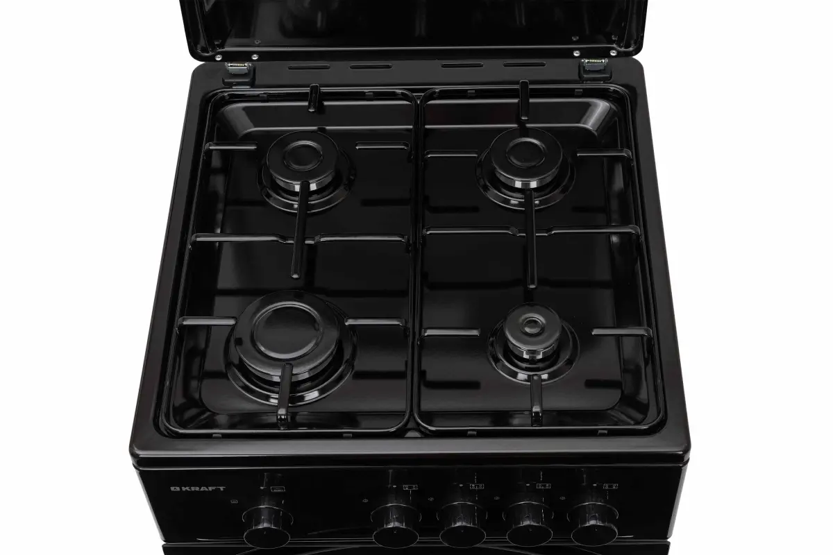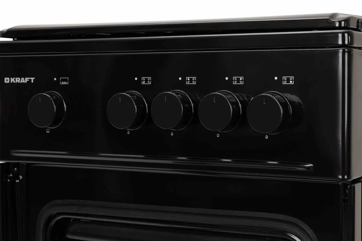 Газовая плита Kraft KF-FSK5301GBL в черном цвете сочетает в себе функциональный дизайн и простоту управления. Данная модель оборудована четырьмя газовыми конфорками и газовым духовым шкафом объемом 58 литров, оснащенным системой газ-контроля. Уровень нагрева духовки определяется с помощью термометра. В комплект входит набор съемных жиклеров для перевода плиты на необходимое газоснабжение.