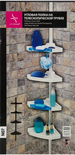 Угловая полка Prima Nova универсального белого цвета отлично подойдет для ванной комнаты и займет совсем немного места. Наличие телескопической трубы позволит установить ее, не прибегая к сверлению дыр в стене. Изделие поможет оптимизировать пространство и разместить множество предметов личной гигиены. Оно оснащено четырьмя полочками, двумя мыльницами и крючками, на которые удобно вешать мочалки. Данный аксессуар сможет прослужить долго даже под воздействием влажной среды в ванной комнате. При необходимости легко демонтируется, не оставляя никаких следов.