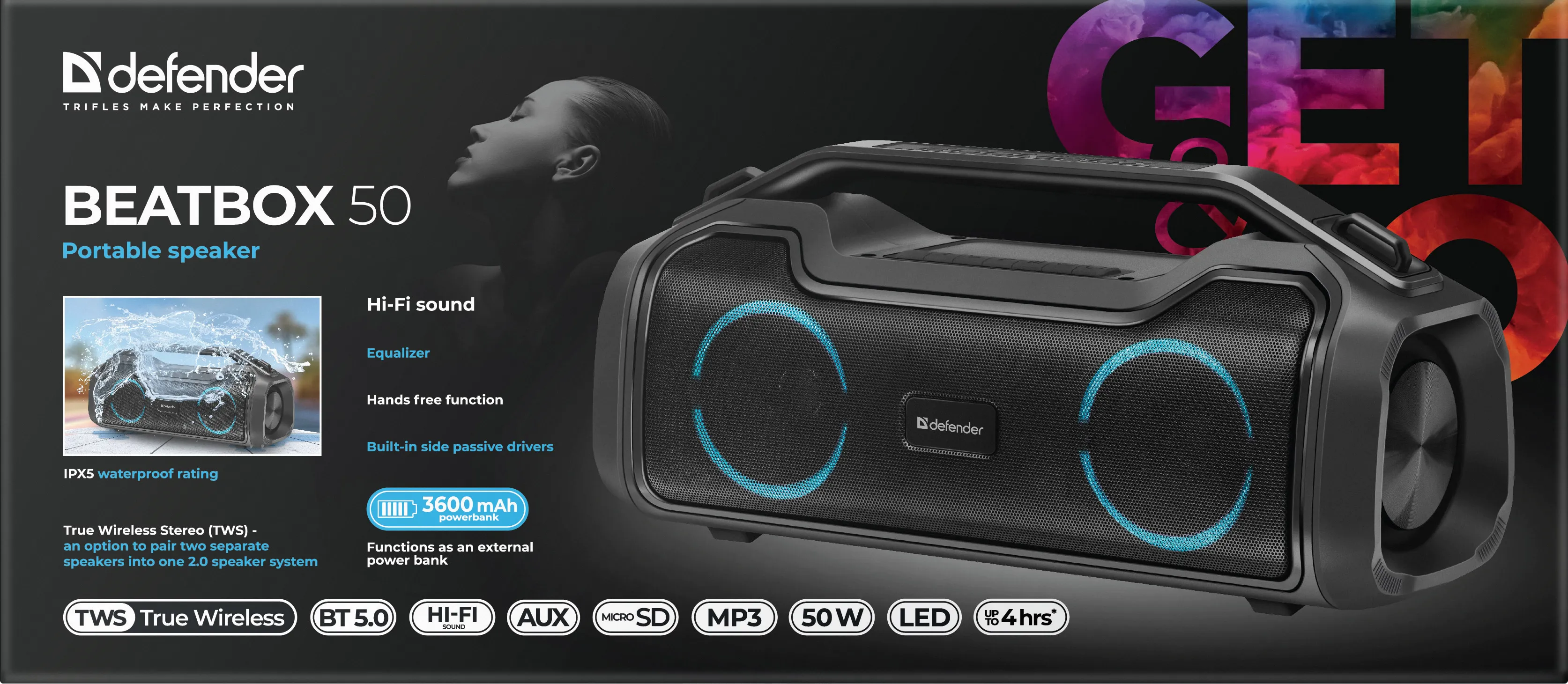 Портативная колонка DEFENDER Beatbox 50 (65950)