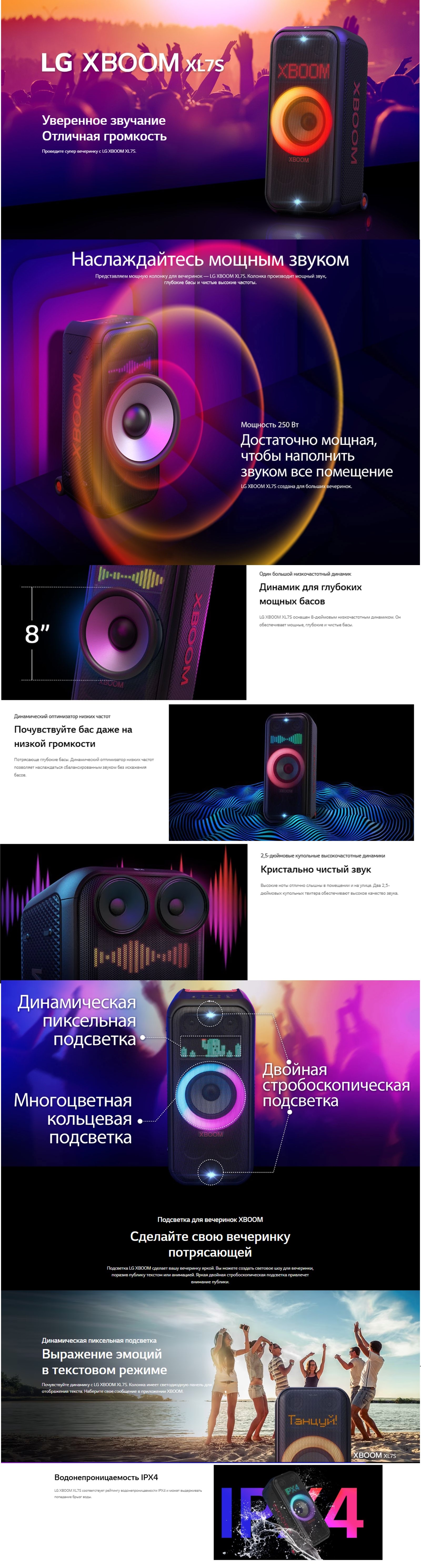 Портативная колонка LG XBOOM XL7S | До 18 часов | 250 Ватт